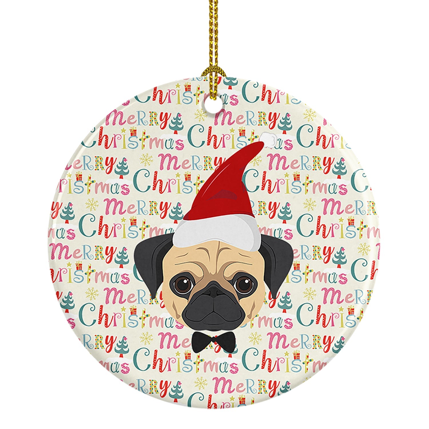 Pug Merry Christmas Ceramic Ornament