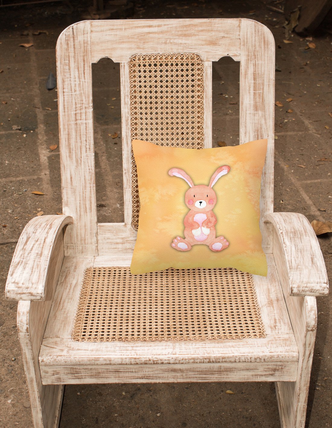 Decorate your space with our Rabbit artwork on a Pillow. Revitalize your outdoor or indoor living space with Caroline's Treasures 18x18 Fabric Decorative Pillow. With a generously sized dimension of approximately 18 inches by 18 inches, this pillow makes a comfortable and aesthetic addition to any seating area. Made from a unique, water-resistant material developed by Caroline's Treasures, the pillow sham is 100% polyester fabric that's durable and ready to weather any condition. Its vibrant, full-color artwork will not fade over time as it is dyed with color-fast dyes. Whether you place it on your patio furniture, porch, veranda, or indoor couch, its soft canvas fabric ensures a cozy experience. The pillow is handcrafted in the United States, featuring a sham created from three pieces of fabric and a polyester insert for enduring shape and overstuffed comfort. Despite being robustly built to endure the outdoors, it is as soft and snug as your favorite indoor cushions. Please note, as all our pillows are handmade, sizes may vary slightly, adding to the charm of this unique decorative item.