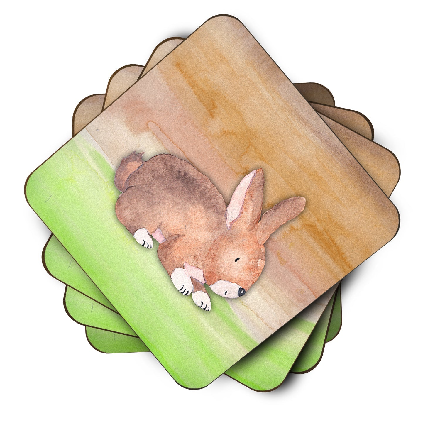 Decorate your space with our Rabbit artwork on a Coaster set. Presenting our Set of 4 Foam Coasters, a stylish and practical addition to your table setting. Each square coaster, measuring 3 1/2 inches by 3 1/2 inches, is perfectly sized to accommodate various drinkware, from coffee mugs to tumblers. These coasters stand out with their full-color artwork, permanently dyed onto the material for a vibrant and fade-resistant finish. They're not just functional, they're a fashionable statement, adding a touch of flair to any gathering or event. Our foam coasters serve a dual purpose - they protect your table from water stains and are perfect for both hot and cold drinks. The material used is similar to that of our high-quality mouse pads, ensuring durability and heat resistance. These coasters are easy to maintain - simply wash them in the top of your dishwasher and lay flat to dry. The design won't come off, ensuring they retain their vivid colors for years. Pair them with one of our insulated coolers or huggers for a cohesive, thoughtful gift set. Enhance your beverage experience with our Set of 4 Foam Coasters.