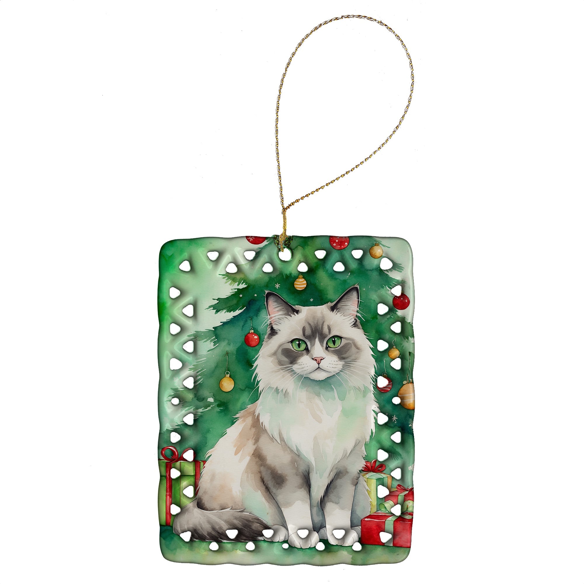 Porcelain Ornament featuring breed specific Ragdoll artwork. Celebrate Christmas with this Christmas Ornament. Add a unique, personal touch to your holiday decor with our Rectangular Lattice Porcelain Ornament. Perfect for creating cherished memories, this high-quality ornament shines under festive lights, reflecting warmth and joy throughout your Christmas tree. Crafted with a glossy finish, it showcases vibrant, full-color artwork contributed by our talented artists, ensuring your tree is adorned with a burst of color and holiday spirit. What sets this Porcelain Ornament apart is its customizable white back. Use a paint pen or permanent marker to write a heartfelt message, commemorate a special year, or mark an unforgettable date, turning this ornament into a keepsake that will be treasured for years to come. For best results, allow any personalization to dry thoroughly before handling. Each ornament comes complete with a delicate gold cord, making it easy to hang and display. Proudly made in the USA, this ornament measures 3.375 x 2.625 inches and is a thoughtful gift for pet sitters, teachers, family members, or anyone who would appreciate a little extra holiday magic. Bring style, charm, and a touch of personal meaning to your Christmas tree with this beautifully designed ornament..