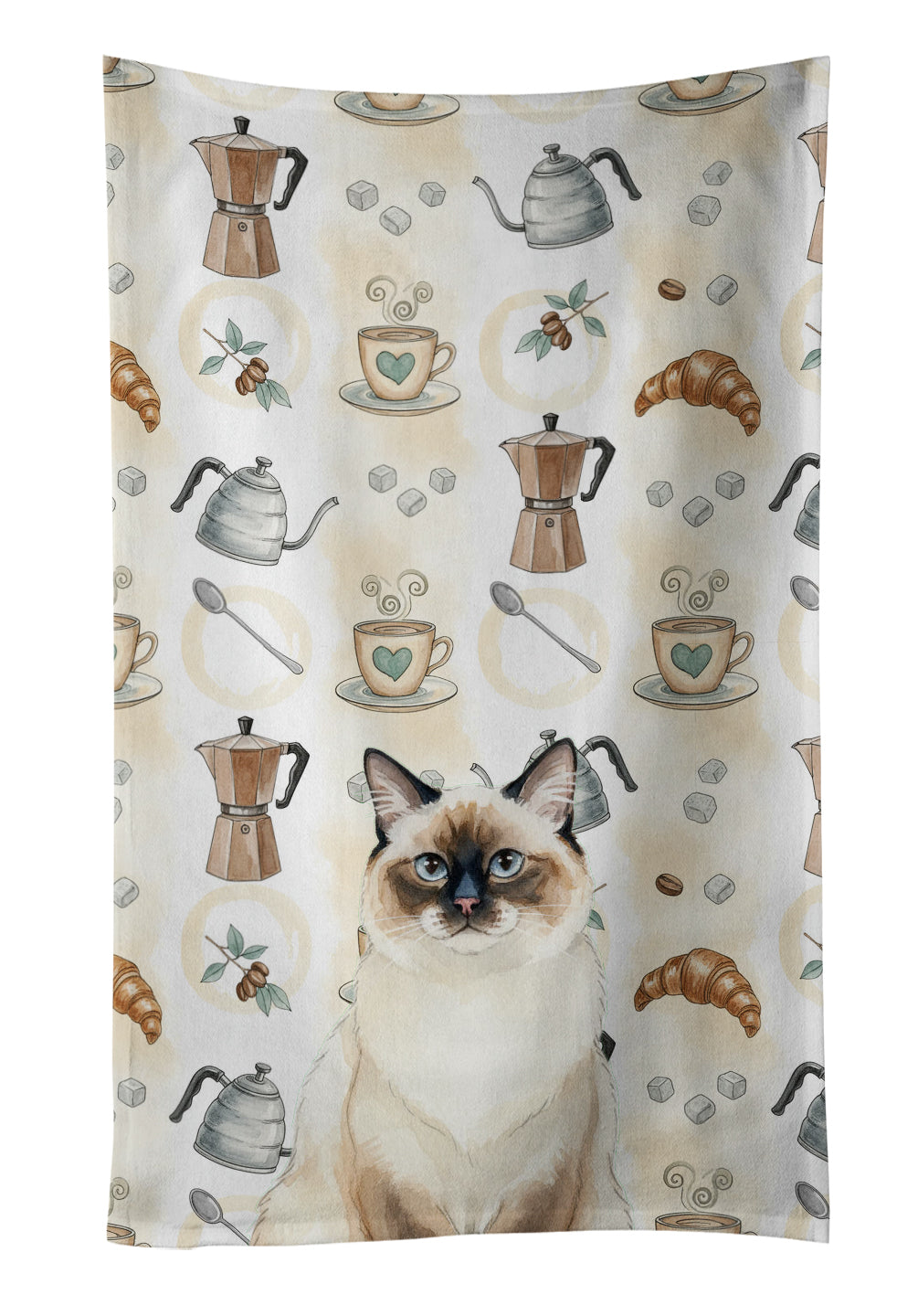 Kitchen Towel featuring breed specific Ragdoll Seal Point artwork. Celebrate Christmas with this Christmas Kitchen Towel. Bring cozy everyday charm to your sink or powder room with a plush velour towel featuring original watercolor artwork. The front is a soft, color-rich minky polyester that polishes glassware to a brilliant shine; the back is 100% white cotton terry loop for quick absorbency on hands, dishes, and counters. Artwork is dyed into the fibers for lasting color that won’t crack or peel. Finished edges keep the shape wash after wash. Size: 15" x 25". Machine wash; tumble dry low. Designed and printed in the USA.