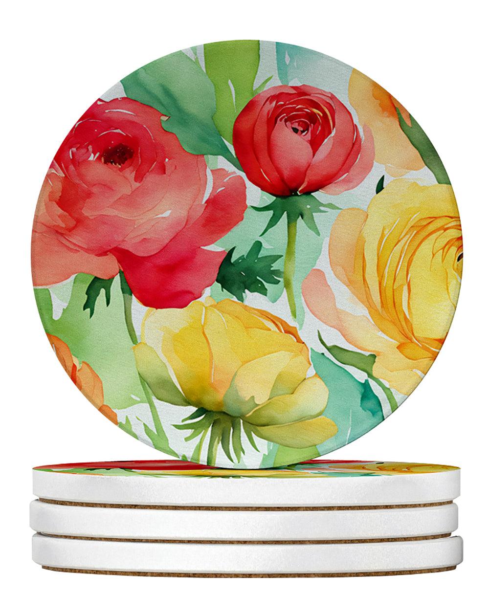 Large Sandstone Coasters Pack of 4 featuring breed specific Ranunculus artwork. Introducing Caroline's Treasures Large Sandstone Coasters Pack of 4, the perfect addition to your home decor. Each coaster measures nearly 4 inches and is made from absorbent sandstone with a cork backing. Designed and printed in the United States, these coasters feature artwork from Caroline's Treasures' talented artists. Protect your countertops and tables from hot and cold drink condensation with these absorbent coasters. They efficiently absorb moisture, ensuring your surfaces stay dry and clean. Choose from a wide range of designs to update and enhance your decor or give them as a thoughtful gift for any occasion. Cleaning is a breeze—simply wipe the coaster with a damp towel to remove any spills or stains. Each set comes in a brown gift box, making it ready to be wrapped for that special person in your life. These absorbent sandstone coasters also make an excellent housewarming gift, providing both practicality and style. Celebrate birthdays, Mother's Day, Father's Day, Thanksgiving, Christmas, Teacher's Appreciation Day, or simply show someone you care with these versatile and charming coasters. Caroline's Treasures Large Sandstone Coasters Pack of 4 is the perfect happy gift for any occasion.