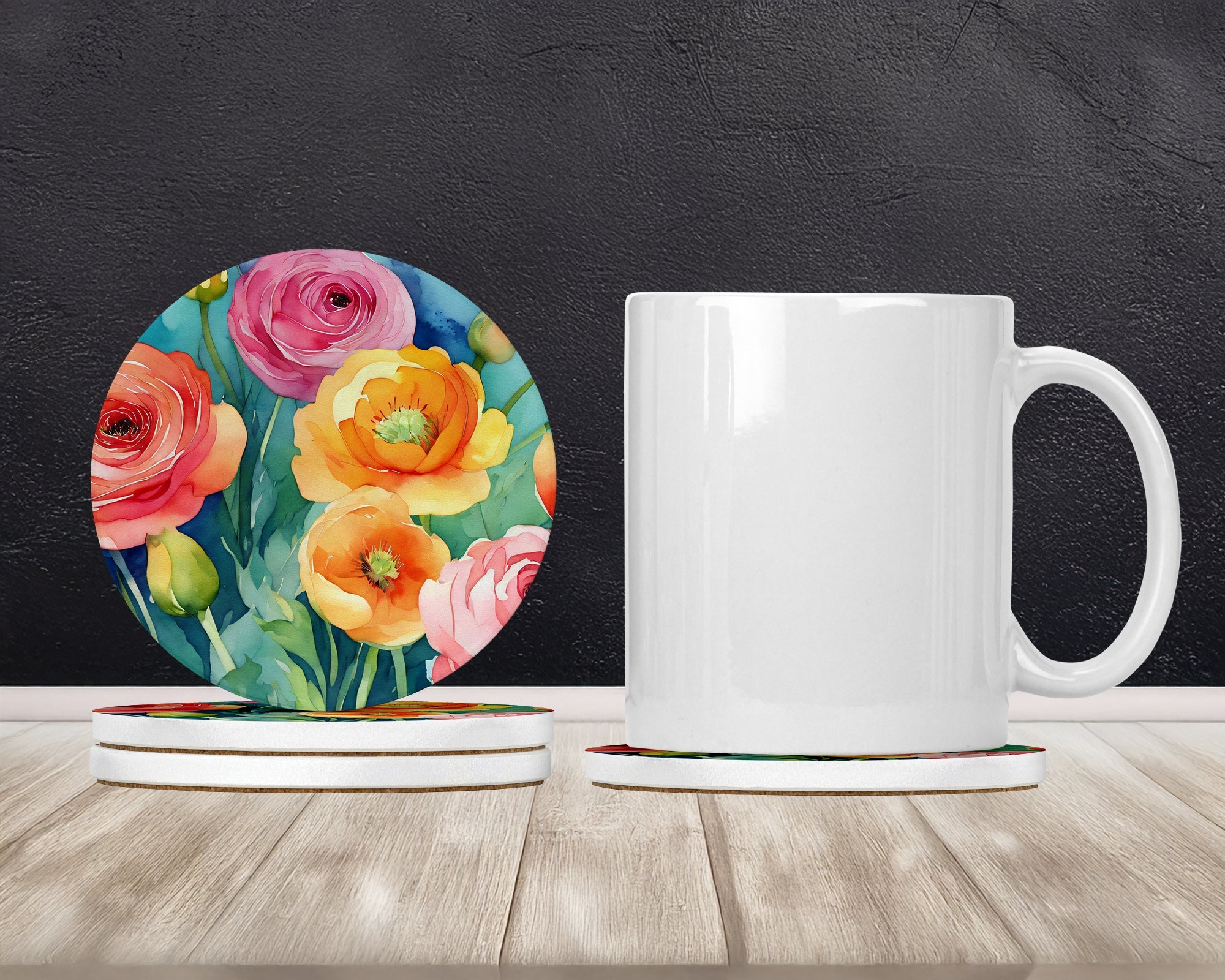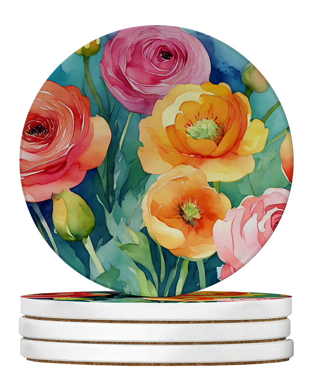 Large Sandstone Coasters Pack of 4 featuring breed specific Ranunculus artwork. Introducing Caroline's Treasures Large Sandstone Coasters Pack of 4, the perfect addition to your home decor. Each coaster measures nearly 4 inches and is made from absorbent sandstone with a cork backing. Designed and printed in the United States, these coasters feature artwork from Caroline's Treasures' talented artists. Protect your countertops and tables from hot and cold drink condensation with these absorbent coasters. They efficiently absorb moisture, ensuring your surfaces stay dry and clean. Choose from a wide range of designs to update and enhance your decor or give them as a thoughtful gift for any occasion. Cleaning is a breeze—simply wipe the coaster with a damp towel to remove any spills or stains. Each set comes in a brown gift box, making it ready to be wrapped for that special person in your life. These absorbent sandstone coasters also make an excellent housewarming gift, providing both practicality and style. Celebrate birthdays, Mother's Day, Father's Day, Thanksgiving, Christmas, Teacher's Appreciation Day, or simply show someone you care with these versatile and charming coasters. Caroline's Treasures Large Sandstone Coasters Pack of 4 is the perfect happy gift for any occasion.