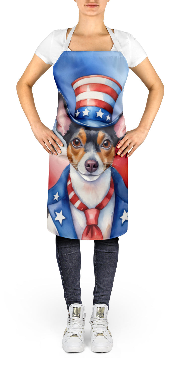 Apron featuring breed specific Rat Terrier artwork. Elevate your cooking, baking, and grilling experiences with our versatile Kitchen or BBQ Apron. This Bib Style apron isn't just limited to culinary activities - it also serves as an excellent baking apron, artist apron, server apron, gardening apron, or even a dog grooming apron. The apron showcases vibrant full-color artwork contributed by one of our talented artists, bringing a dash of style to your daily tasks. With dimensions of approximately 27"W x 30"H, it provides ample coverage to protect your clothing from spills and splashes. Our apron is meticulously crafted from 100% Ultra Spun Polyester, known for its durability and lightweight nature. The apron comes with white tie straps, ensuring a comfortable and adjustable fit for all. It's a perfect choice for kitchen apron enthusiasts, whether you are a woman or a man. Designed for easy maintenance, this apron is fully machine washable. The quick-drying polyester material actively reduces staining, keeping your apron looking fresh and new for longer. Our beautifully designed apron isn't just a functional kitchen accessory - it's a fashion statement in the culinary world!