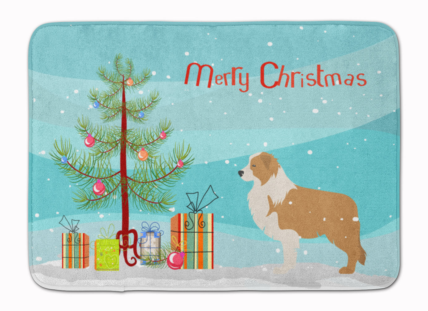 Red Border Collie Merry Christmas Tree Machine Washable Memory Foam Mat BB2940RUG