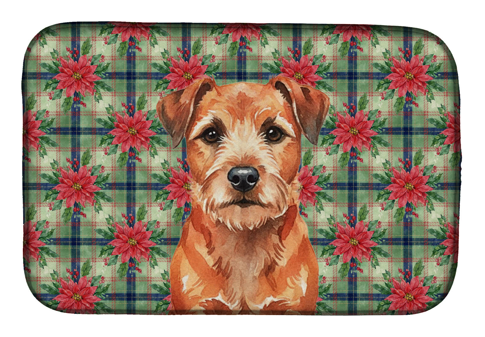 Dish Drying Mat featuring breed specific Border Terrier artwork. Celebrate Christmas with this Christmas Dish Drying Mat. Say goodbye to messy countertops and soggy dish towels with our innovative dish drying mat. Our high-quality dish drying pad is designed to keep your countertops dry while offering a stylish and efficient solution. Whether you're air drying dishes, glasses, stemware, silverware, pots, pans, bottles, or even fruits and vegetables, our dish mat is the perfect choice. The 14 inches x 22 inches size fits most counters and dish drying racks, and the non-slip design ensures stability. Made with water-absorbent polyester and a polyurethane foam insert, our dish drying mat is not only functional but also durable. It's machine washable and printed in the USA for long-lasting use. The beautiful artwork adds flair to your kitchen decor, making it a perfect housewarming gift or present for any occasion. Upgrade your kitchen experience with our absorbent and versatile dish drying mat.