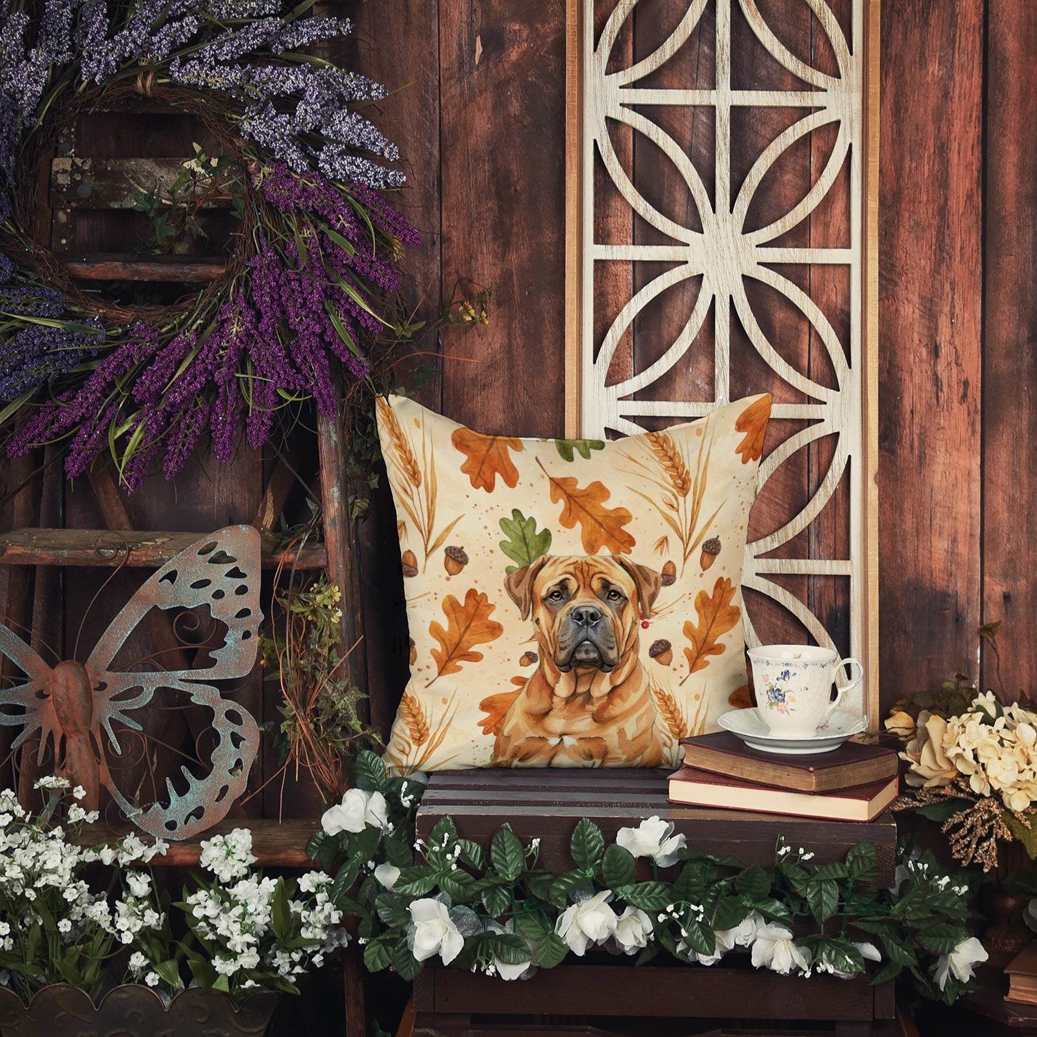 Throw Pillow featuring breed specific Bullmastiff artwork. Celebrate Thanksgiving with this Thanksgiving Pillow. Add a touch of vibrancy and comfort to your outdoor seating with Caroline's Treasures Fabric Decorative Pillow. Measuring approximately 14 inches by 14 inches, this outdoor pillow is crafted to elevate the appeal of your patio furniture, infusing it with vivid color and artistic flair. The pillow includes a 100% Polyester Fabric sham filled with a quality pillow form to provide superior comfort. Innovatively made from our brand new material, specifically woven for its water resistance, this pillow is designed for durability. The soft canvas fabric offers versatility in use, fit for your indoor couch or your outdoor patio, porch, or veranda. The fabric is dyed with colorfast dyes built for resilience against weather conditions, ensuring the pillow retains its beauty over time. Constructed by sewing three fabric pieces to create a sham, the polyester insert is then nestled inside to form the pillow, resulting in an overstuffed pillow that maintains its shape. Both the sham and the pillow insert are proudly made in the United States. As the pillows are handcrafted, there may be minor variations in size, further enhancing their unique charm. Experience comfort in style with Caroline's Treasures Fabric Decorative Pillow.