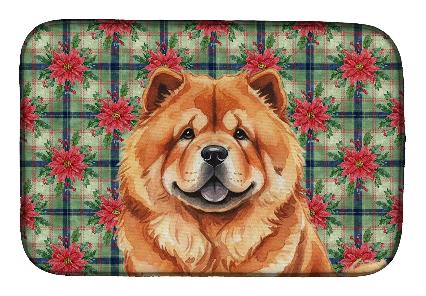 Dish Drying Mat featuring breed specific Chow Chow artwork. Celebrate Christmas with this Christmas Dish Drying Mat. Say goodbye to messy countertops and soggy dish towels with our innovative dish drying mat. Our high-quality dish drying pad is designed to keep your countertops dry while offering a stylish and efficient solution. Whether you're air drying dishes, glasses, stemware, silverware, pots, pans, bottles, or even fruits and vegetables, our dish mat is the perfect choice. The 14 inches x 22 inches size fits most counters and dish drying racks, and the non-slip design ensures stability. Made with water-absorbent polyester and a polyurethane foam insert, our dish drying mat is not only functional but also durable. It's machine washable and printed in the USA for long-lasting use. The beautiful artwork adds flair to your kitchen decor, making it a perfect housewarming gift or present for any occasion. Upgrade your kitchen experience with our absorbent and versatile dish drying mat.