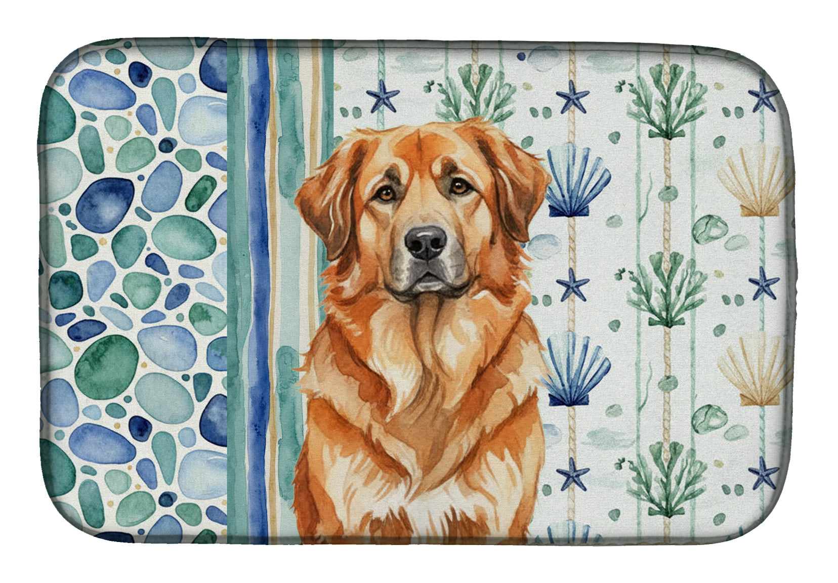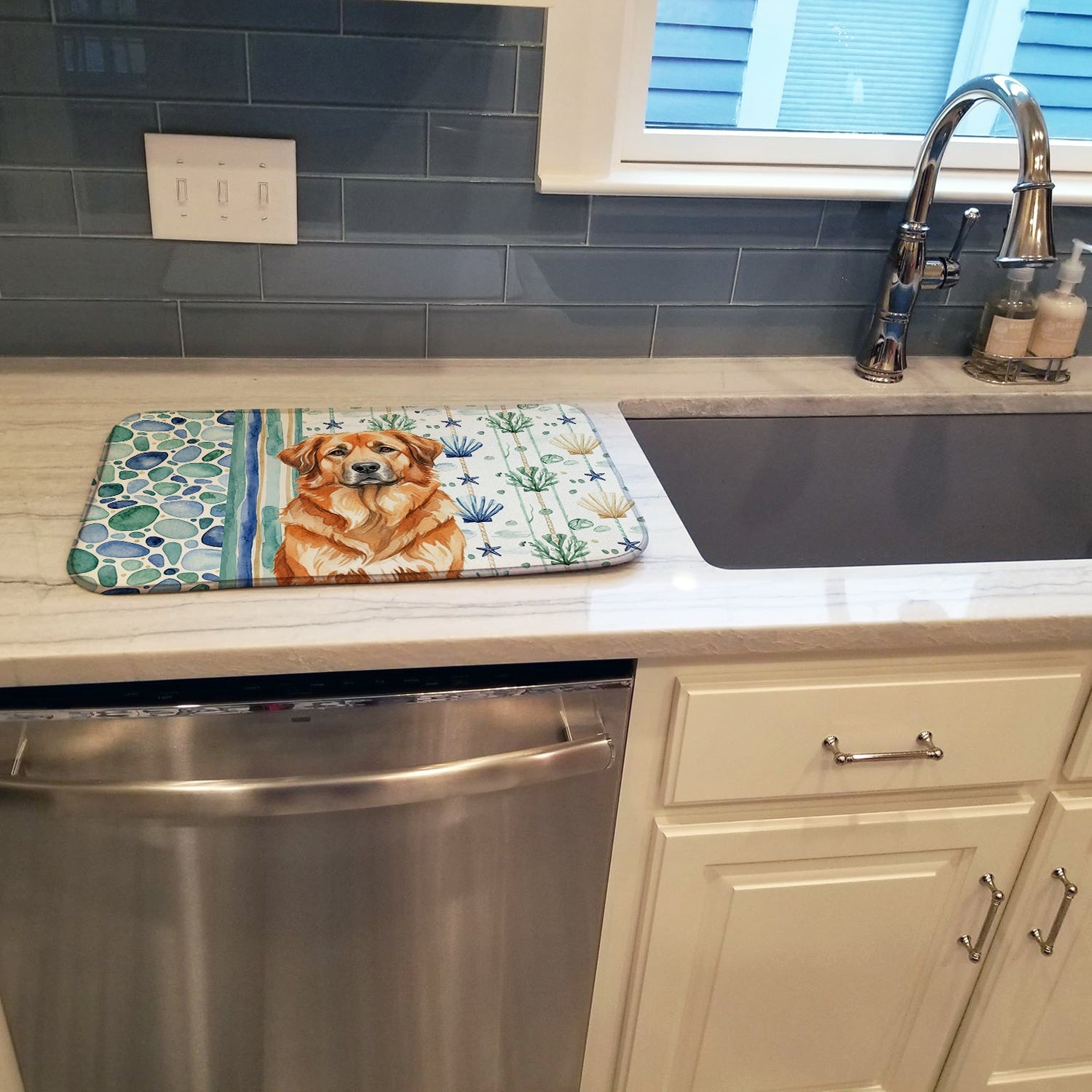 Shown here is the Red Leonberger Coastal Sea Glass Dish Drying Mat from Caroline's Treasures featuring artwork of a Leonberger in a Everyday design. The detailed illustration and vibrant colors make it a standout accent that celebrates both seasonal style and love for the subject. This image features a calming coastal watercolor pattern with soft seashells, seaweed, starfish, and pebble-inspired accents arranged in a repeating design. The soothing palette of blues, greens, and sandy neutrals creates a relaxed, beach-inspired look that adds a fresh and tranquil feel to any space. Everyday décor celebrates personal style and the small moments that make a house feel like home. Thoughtful designs add warmth and personality that can be enjoyed year-round. Say goodbye to messy countertops and soggy dish towels with our innovative dish drying mat. Our high-quality dish drying pad is designed to keep your countertops dry while offering a stylish and efficient solution. Whether you're air drying dishes, glasses, stemware, silverware, pots, pans, bottles, or even fruits and vegetables, our dish mat is the perfect choice. The 14 inches x 21 inches size fits most counters and dish drying racks, and the non-slip design ensures stability. Made with water-absorbent polyester and a polyurethane foam insert, our dish drying mat is not only functional but also durable. It's machine washable and printed in the USA for long-lasting use. The beautiful artwork adds flair to your kitchen decor, making it a perfect housewarming gift or present for any occasion. Upgrade your kitchen experience with our absorbent and versatile dish drying mat. Perfect for: Kitchen counters and sinks, everyday dish drying and countertop protection, Dogs-themed homes, or year-round use for Leonberger lovers. Leonbergers are large companion dogs known for their gentle nature and imposing size. This family-oriented breed is cherished for its loyalty, patience, and calm confidence. Makes a heartfelt gift for: Leonberger owners, Dogs lovers, Everyday gifts, pet parents, friends who adore their Leonberger, or anyone celebrating Dogs.