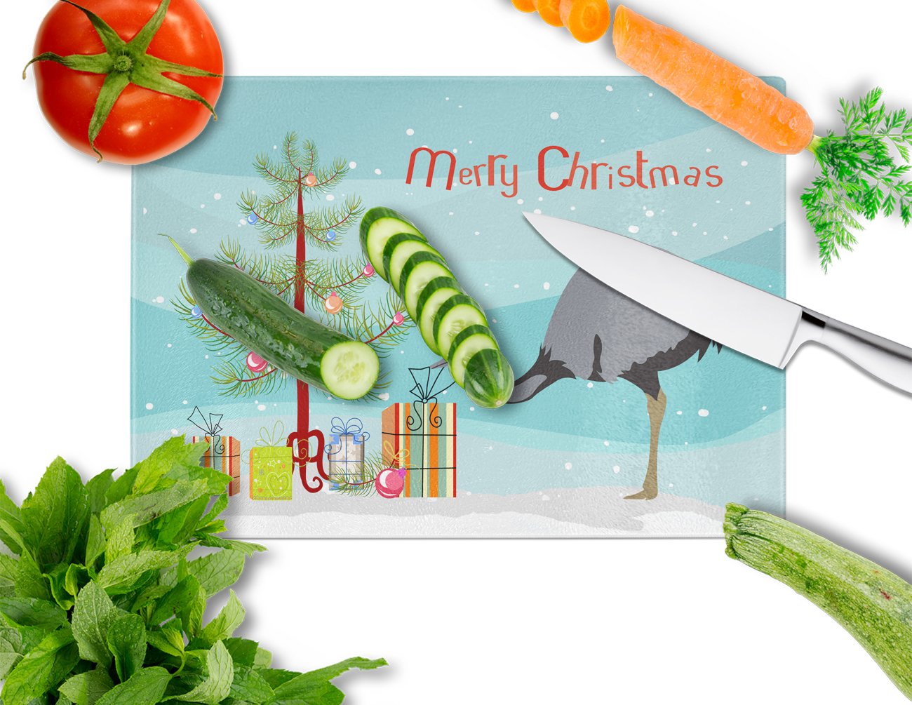Decorate your space with our Christmas Rhea artwork on a Cutting Board. Introduce your kitchen to the vibrant, large Decorative Glass Cutting Board from Caroline's Treasures. Crafted from resilient tempered glass, this board is not only a utilitarian necessity but also a colorful art piece. With its generous dimensions of 15 inches in height and 12 inches in length, it offers ample space for all your cutting needs. Every piece showcases captivating artwork from distinguished artists, bringing an aesthetic edge to your kitchen. Beyond its attractive design, this cutting board ensures your countertop stays pristine and unscathed, owing to its heat-resistant properties. Engineered with user convenience in mind, it features non-skid feet for stability, and rounded corners for additional safety. Its robust construction renders it virtually unbreakable, guaranteeing longevity. The board comes with protective feet bumpers, maintaining its position during use. This product is recommended to be hand washed only. Proudly printed and assembled in the United States, this cutting board exemplifies superior craftsmanship. With Caroline's Treasures' Decorative Glass Cutting Board, you're investing in a blend of functionality and artistic flair.