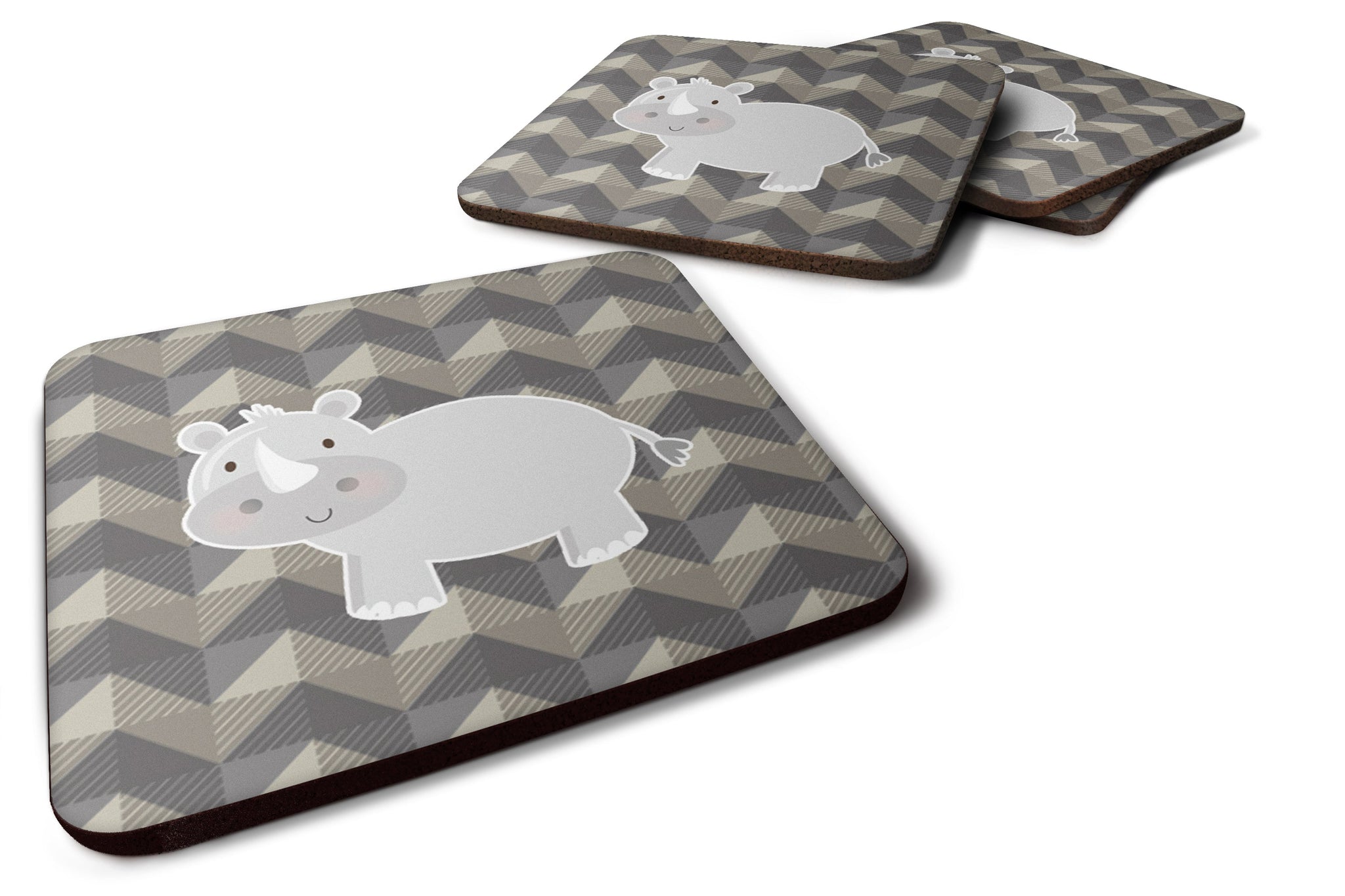 Decorate your space with our Rhinoceros artwork on a Coaster set. Presenting our Set of 4 Foam Coasters, a stylish and practical addition to your table setting. Each square coaster, measuring 3 1/2 inches by 3 1/2 inches, is perfectly sized to accommodate various drinkware, from coffee mugs to tumblers. These coasters stand out with their full-color artwork, permanently dyed onto the material for a vibrant and fade-resistant finish. They're not just functional, they're a fashionable statement, adding a touch of flair to any gathering or event. Our foam coasters serve a dual purpose - they protect your table from water stains and are perfect for both hot and cold drinks. The material used is similar to that of our high-quality mouse pads, ensuring durability and heat resistance. These coasters are easy to maintain - simply wash them in the top of your dishwasher and lay flat to dry. The design won't come off, ensuring they retain their vivid colors for years. Pair them with one of our insulated coolers or huggers for a cohesive, thoughtful gift set. Enhance your beverage experience with our Set of 4 Foam Coasters.