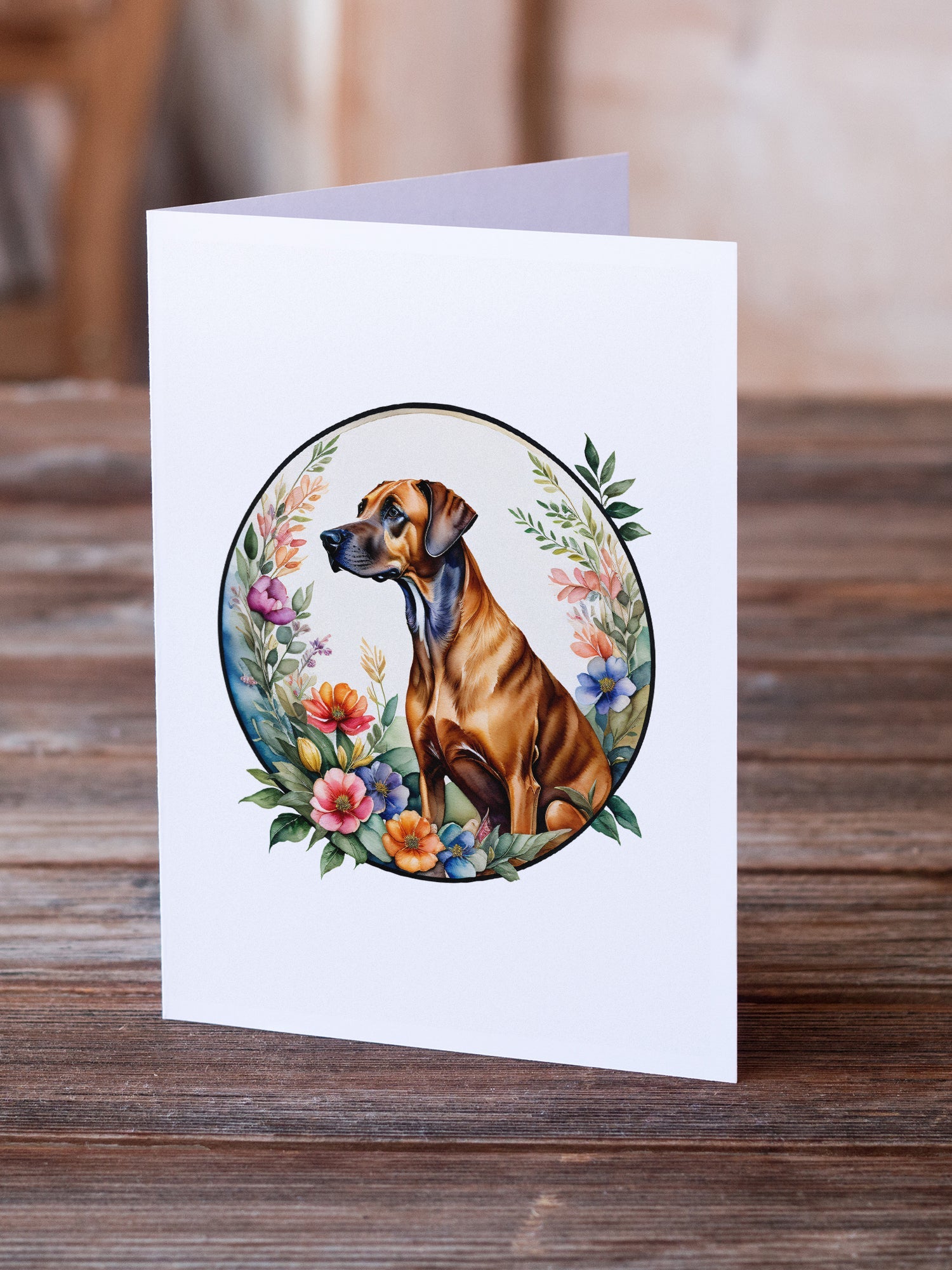 Rhodesian Ridgeback and Flowers Greeting Cards -  Blank Note Cards – 8-Pack of Artist-Designed Cards with Envelopes