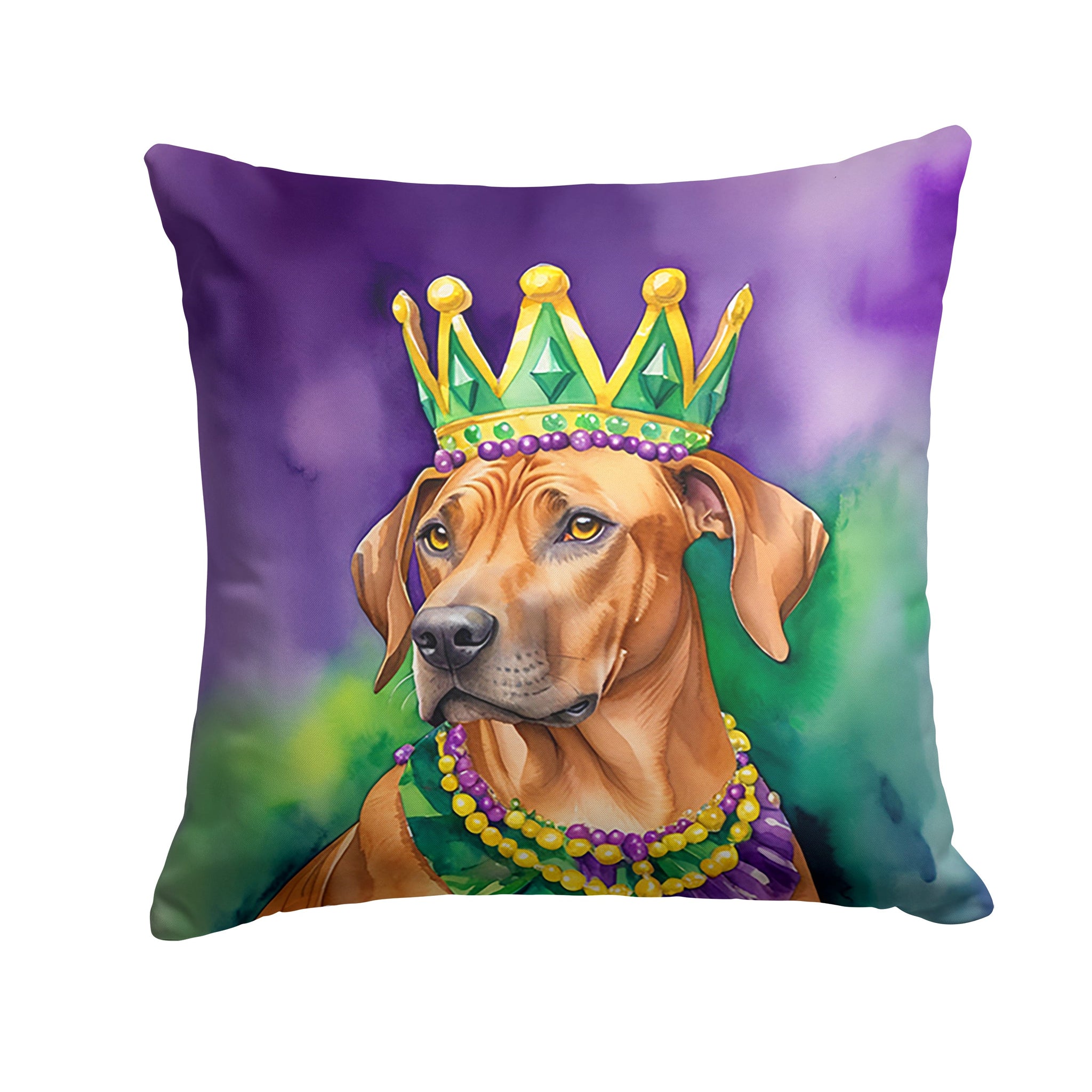 Throw Pillow featuring breed specific Rhodesian Ridgeback artwork. Celebrate Mardi Gras with this Mardi Gras Pillow. Revitalize your outdoor or indoor living space with Caroline's Treasures 18x18 Fabric Decorative Pillow. With a generously sized dimension of approximately 18 inches by 18 inches, this pillow makes a comfortable and aesthetic addition to any seating area. Made from a unique, water-resistant material developed by Caroline's Treasures, the pillow sham is 100% polyester fabric that's durable and ready to weather any condition. Its vibrant, full-color artwork will not fade over time as it is dyed with color-fast dyes. Whether you place it on your patio furniture, porch, veranda, or indoor couch, its soft canvas fabric ensures a cozy experience. The pillow is handcrafted in the United States, featuring a sham created from three pieces of fabric and a polyester insert for enduring shape and overstuffed comfort. Despite being robustly built to endure the outdoors, it is as soft and snug as your favorite indoor cushions. Please note, as all our pillows are handmade, sizes may vary slightly, adding to the charm of this unique decorative item.