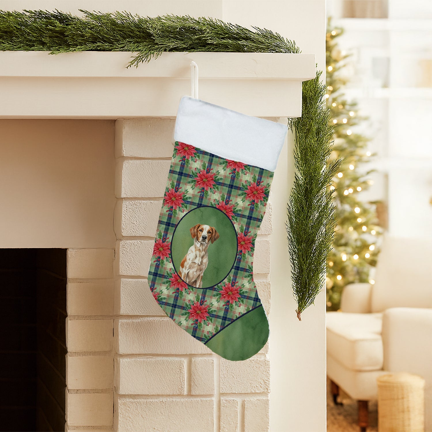 Holiday Stocking featuring breed specific Brittany artwork. Celebrate Christmas with this Christmas Stocking. Bring holiday warmth to your home with a Caroline’s Treasures Christmas Stocking. Proudly designed, printed, and sewn in the USA. Made from premium 100% polyester suede, this luxurious holiday stocking combines softness with durability for years of festive joy. Measuring approximately 18 inches tall by 11 inches wide, it offers plenty of room for Santa’s surprises and holiday treats. Each stocking features vibrant full-color artwork printed on both sides, ensuring your holiday design shines from every angle - perfect for mantels, shelves, or stocking hangers. The sturdy fabric loop is crafted from matching suede for a secure, stylish display. When the festivities end, simply machine wash, lay flat, or hang to dry and it’s ready for next year’s celebrations. Add a touch of handmade charm and American craftsmanship to your Christmas decor. Perfect for families, pet lovers, and holiday hosts who want a coordinated, made-in-USA look.
