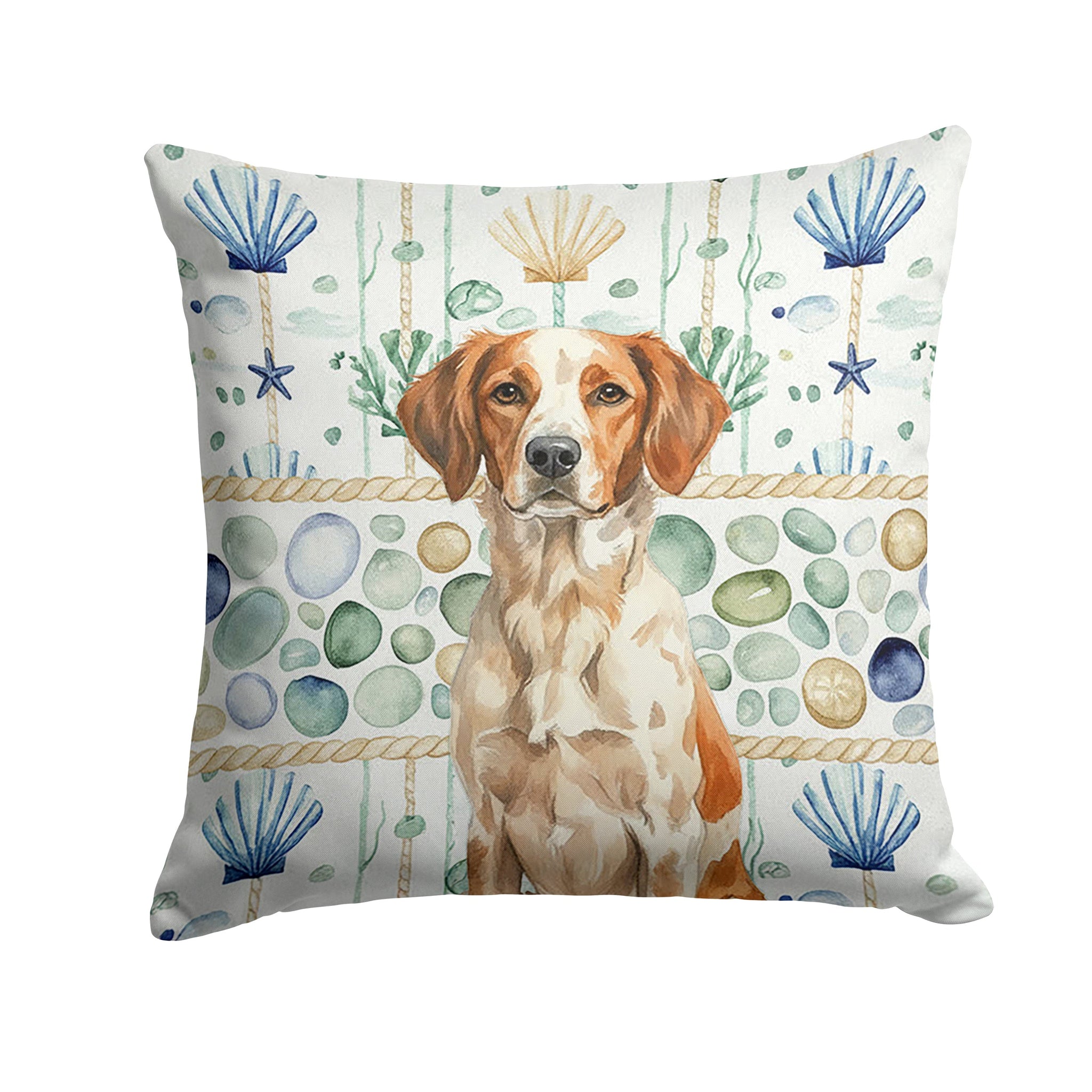 Throw Pillow featuring breed specific Brittany artwork. Revitalize your outdoor or indoor living space with Caroline's Treasures 18x18 Fabric Decorative Pillow. With a generously sized dimension of approximately 18 inches by 18 inches, this pillow makes a comfortable and aesthetic addition to any seating area. Made from a unique, water-resistant material developed by Caroline's Treasures, the pillow sham is 100% polyester fabric that's durable and ready to weather any condition. Its vibrant, full-color artwork will not fade over time as it is dyed with color-fast dyes. Whether you place it on your patio furniture, porch, veranda, or indoor couch, its soft canvas fabric ensures a cozy experience. The pillow is handcrafted in the United States, featuring a sham created from three pieces of fabric and a polyester insert for enduring shape and overstuffed comfort. Despite being robustly built to endure the outdoors, it is as soft and snug as your favorite indoor cushions. Please note, as all our pillows are handmade, sizes may vary slightly, adding to the charm of this unique decorative item.