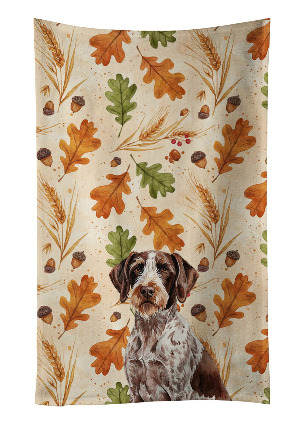 Kitchen Towel featuring breed specific German Wirehaired Pointer artwork. Celebrate Thanksgiving with this Thanksgiving Kitchen Towel. Bring cozy fall charm to your sink or powder room with a plush velour towel featuring original watercolor artwork. The front is a soft, color-rich minky polyester that polishes glassware to a brilliant shine; the back is 100% white cotton terry loop for quick absorbency on hands, dishes, and counters. Artwork is dyed into the fibers for lasting color that won’t crack or peel. Finished edges keep the shape wash after wash. Size: 15" x 25". Machine wash; tumble dry low. Designed and printed in the USA.
