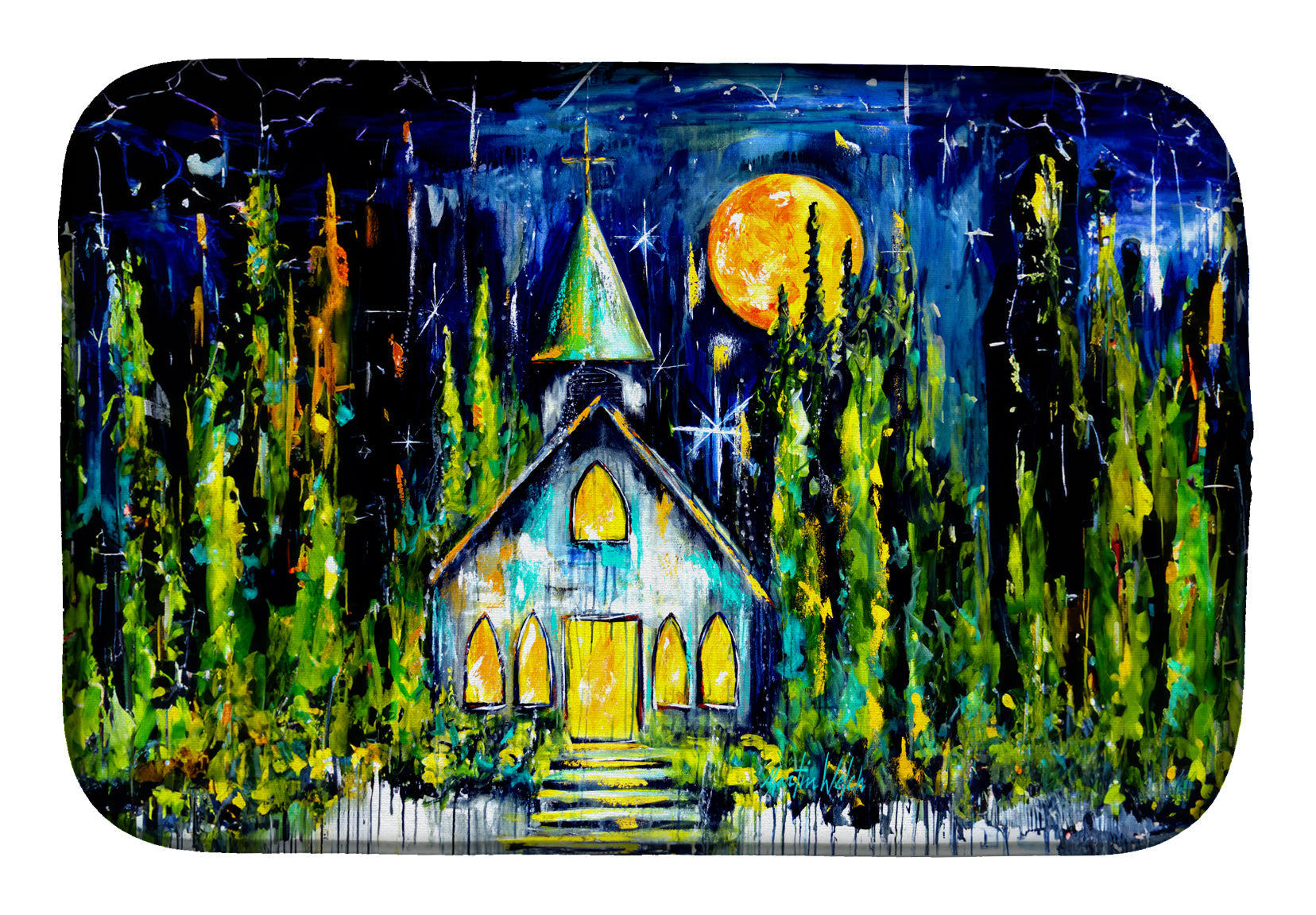 Rock of Ages Church Dish Drying Mat – Absorbent, Artistic Kitchen Essentials