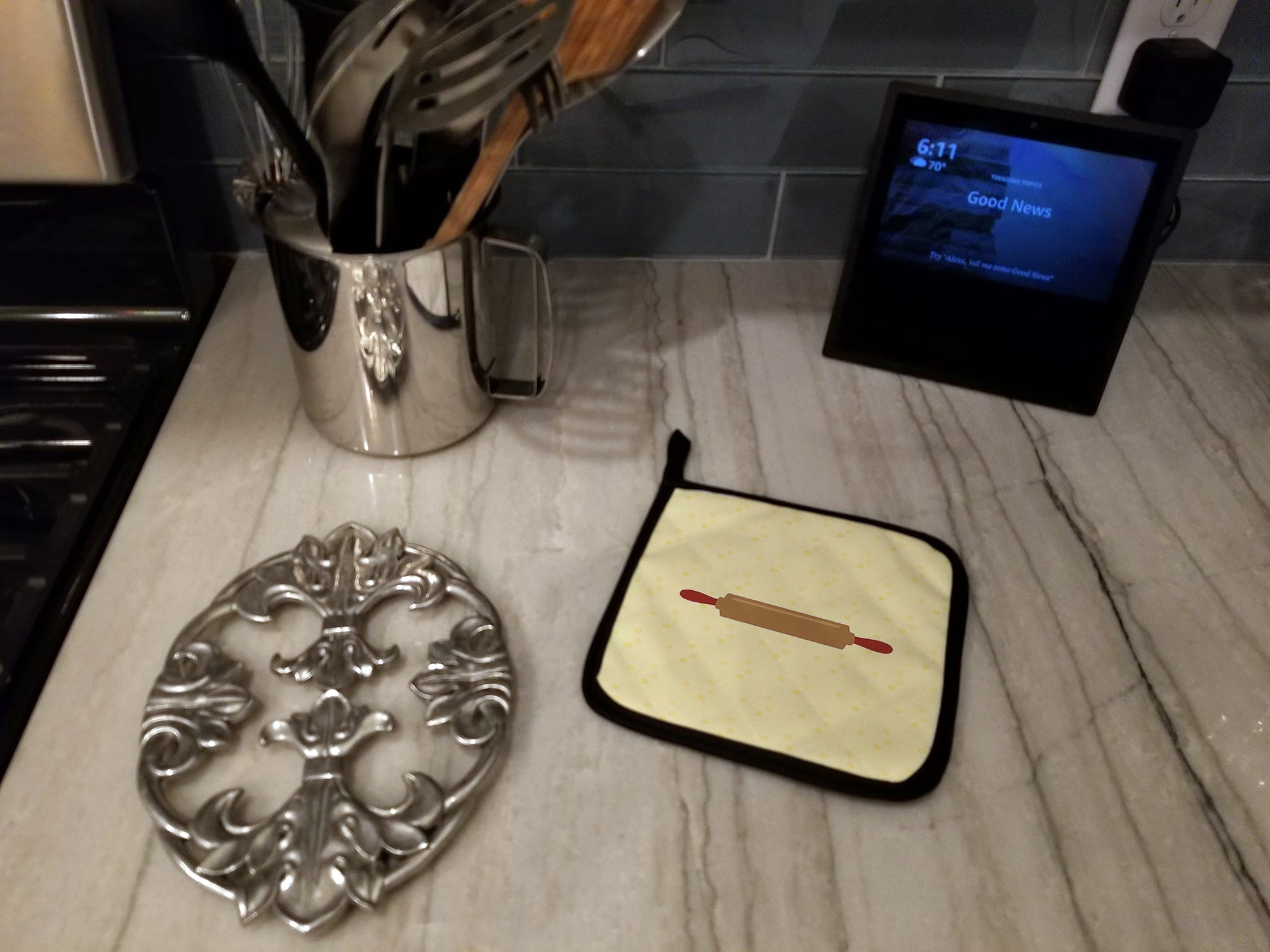 A Pair of Pot Holders to match your kitchen decor. Made in the USA these are thick and functional. Full color artwork decorates the front polyester fabric of the hot pad and accented by a black trim. Use these at as a trivet for your Thanksgiving or Christmas tablescape. Filled with insulated fabric and quilted for durability. These colorful pot holders will make a great gift for your favorite home cook or executive chef. Each pot holder measures approximately 7 1/2 inches by 7 1/2 inches. A hanging tab is included.