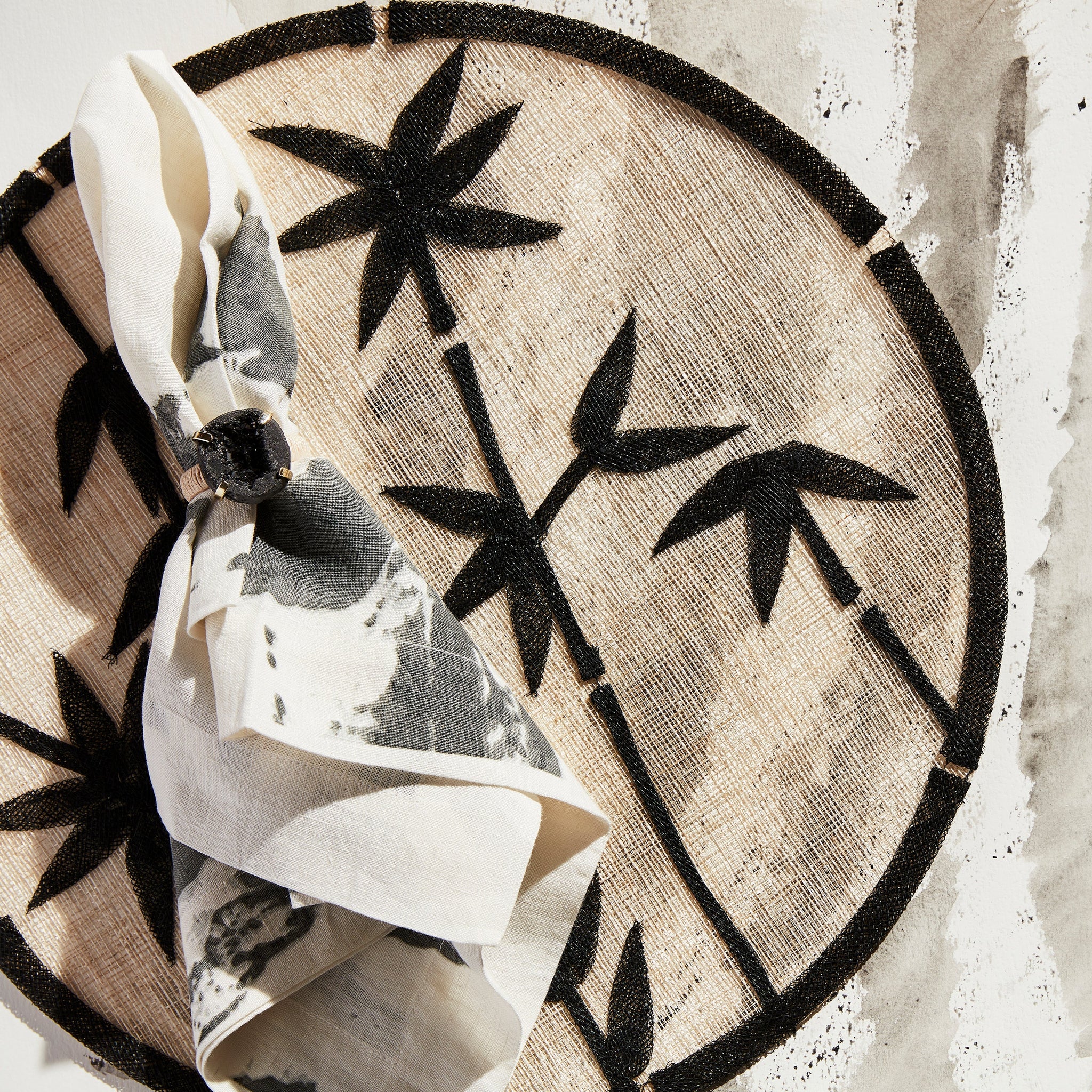 These napkin rings with real druzy stones paired with a natural, wrapped raffia band are simply exquisite. I love these for beach dining or for a natural element in a super modern setting. These napkin rings are perfect with neutral table linens all year round. Luxury rustic meets organic sparkle!