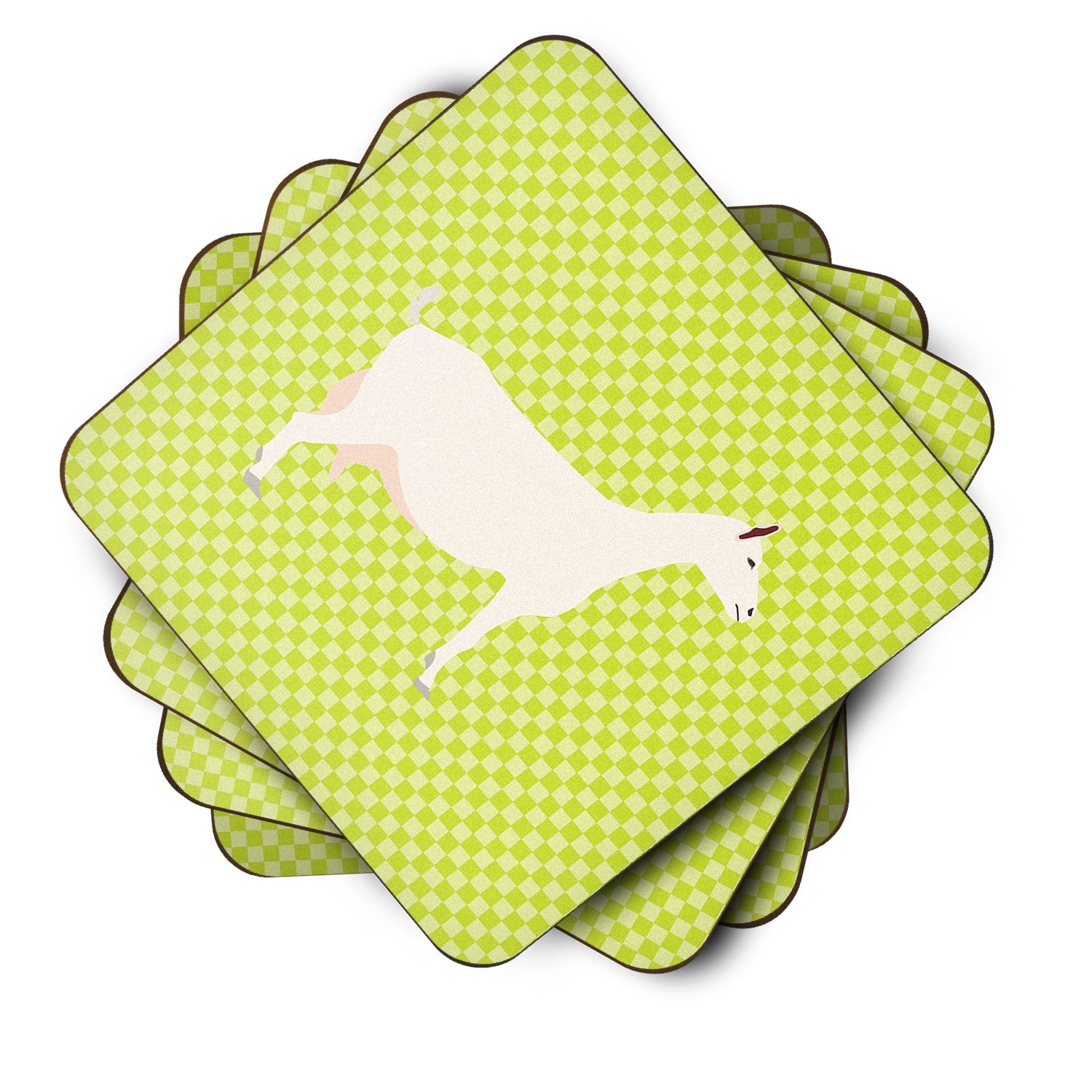 Decorate your space with our Saanen Goat artwork on a Coaster set. Presenting our Set of 4 Foam Coasters, a stylish and practical addition to your table setting. Each square coaster, measuring 3 1/2 inches by 3 1/2 inches, is perfectly sized to accommodate various drinkware, from coffee mugs to tumblers. These coasters stand out with their full-color artwork, permanently dyed onto the material for a vibrant and fade-resistant finish. They're not just functional, they're a fashionable statement, adding a touch of flair to any gathering or event. Our foam coasters serve a dual purpose - they protect your table from water stains and are perfect for both hot and cold drinks. The material used is similar to that of our high-quality mouse pads, ensuring durability and heat resistance. These coasters are easy to maintain - simply wash them in the top of your dishwasher and lay flat to dry. The design won't come off, ensuring they retain their vivid colors for years. Pair them with one of our insulated coolers or huggers for a cohesive, thoughtful gift set. Enhance your beverage experience with our Set of 4 Foam Coasters.