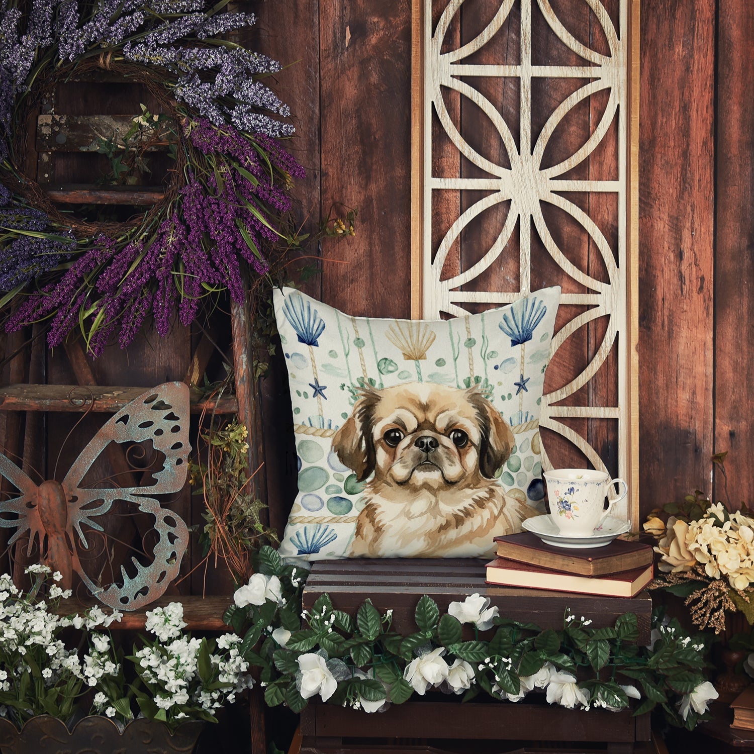 Throw Pillow featuring breed specific Pekingese artwork. Add a touch of vibrancy and comfort to your outdoor seating with Caroline's Treasures Fabric Decorative Pillow. Measuring approximately 14 inches by 14 inches, this outdoor pillow is crafted to elevate the appeal of your patio furniture, infusing it with vivid color and artistic flair. The pillow includes a 100% Polyester Fabric sham filled with a quality pillow form to provide superior comfort. Innovatively made from our brand new material, specifically woven for its water resistance, this pillow is designed for durability. The soft canvas fabric offers versatility in use, fit for your indoor couch or your outdoor patio, porch, or veranda. The fabric is dyed with colorfast dyes built for resilience against weather conditions, ensuring the pillow retains its beauty over time. Constructed by sewing three fabric pieces to create a sham, the polyester insert is then nestled inside to form the pillow, resulting in an overstuffed pillow that maintains its shape. Both the sham and the pillow insert are proudly made in the United States. As the pillows are handcrafted, there may be minor variations in size, further enhancing their unique charm. Experience comfort in style with Caroline's Treasures Fabric Decorative Pillow.