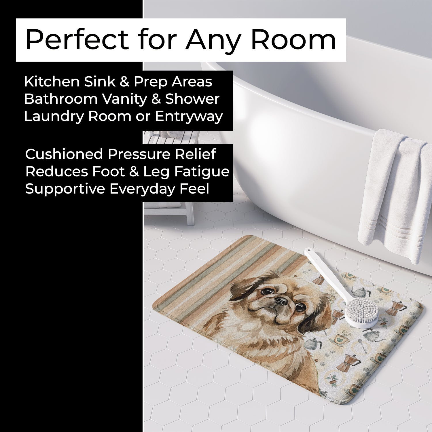 Shown here is the Sable Pekingese Coffee Bar Memory Foam Kitchen Mat from Caroline's Treasures featuring artwork of a Pekingese in a Everyday design. The detailed illustration and vibrant colors make it a standout accent that celebrates both seasonal style and love for the subject. This image features a cozy watercolor coffee-themed pattern with illustrated mugs, moka pots, kettles, croissants, coffee beans, and sugar cubes arranged in a repeating design. Soft neutral tones with warm browns, creams, and subtle sage accents create an inviting, café-inspired look that feels comforting and relaxed. Everyday décor celebrates personal style and the small moments that make a house feel like home. Thoughtful designs add warmth and personality that can be enjoyed year-round. Transform your floor into a work of art with Caroline's Treasures' Memory Foam Mat. This mat offers not only a stunning visual appeal but also a luxurious, plush feel that's incredibly comfortable to the touch. It's a versatile, machine-washable mat designed for both bath and kitchen use, ensuring you experience the best in comfort and convenience. Care Instructions: Maintaining this memory foam mat is a breeze. Simply follow the care instructions on the product tag. It's recommended to wash in cold water and dry on a low-temperature setting in the dryer. This ensures the mat retains its quality and longevity, allowing you to enjoy its beauty and comfort for a long time. Caroline's Treasures' Memory Foam Mat Machine Washable is the perfect blend of artistry, comfort, and practicality, making it a standout addition to any space. Upgrade your home decor with this versatile and stylish mat today. Pekingese are regal companion dogs known for their distinctive appearance and confident demeanor. This ancient breed is cherished for its loyalty, independence, and dignified presence. Makes a heartfelt gift for: Pekingese owners, Dogs lovers, Everyday gifts, pet parents, friends who adore their Pekingese, or anyone celebrating Dogs.