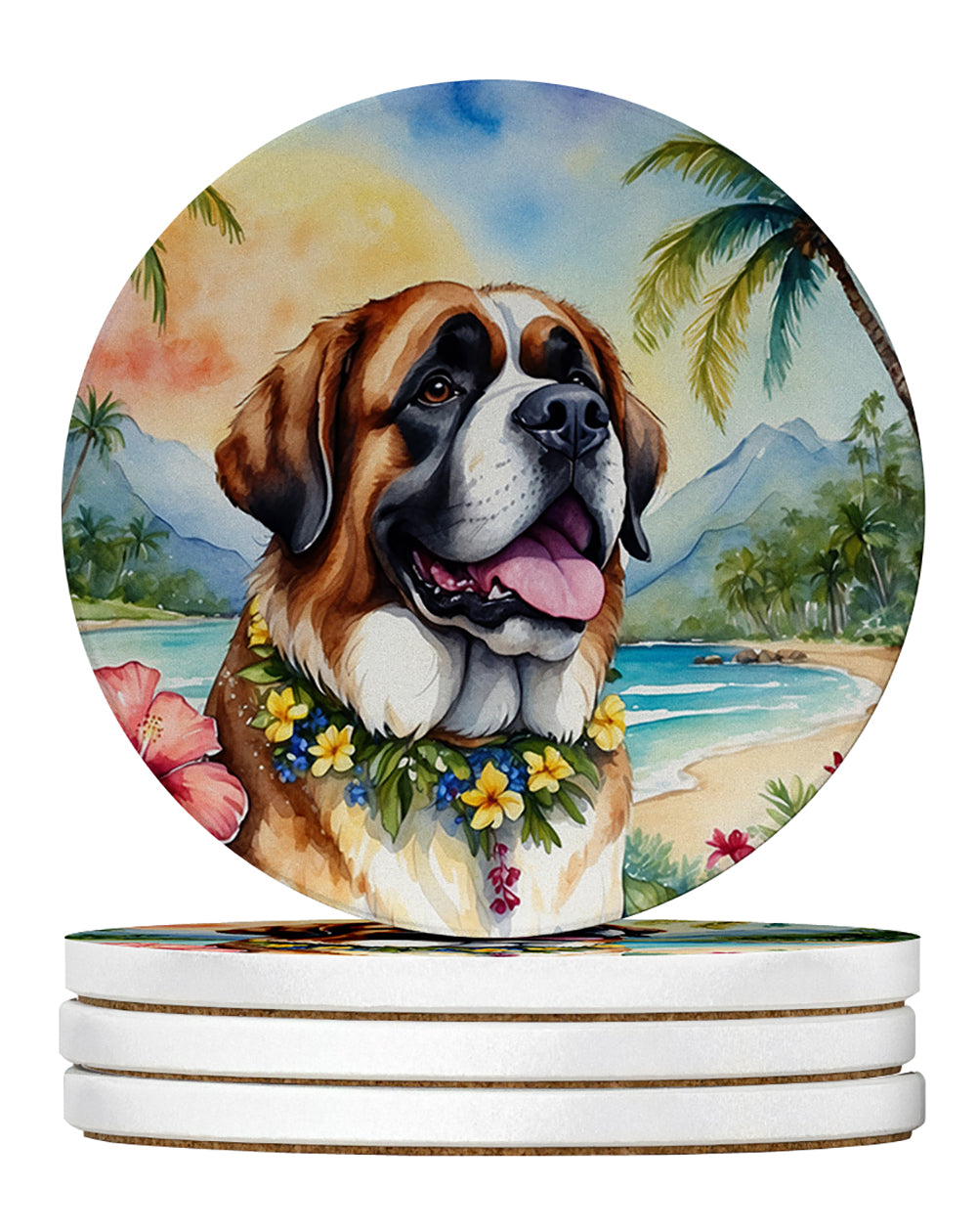 Saint Bernard Luau Large Sandstone Coasters Pack of 4