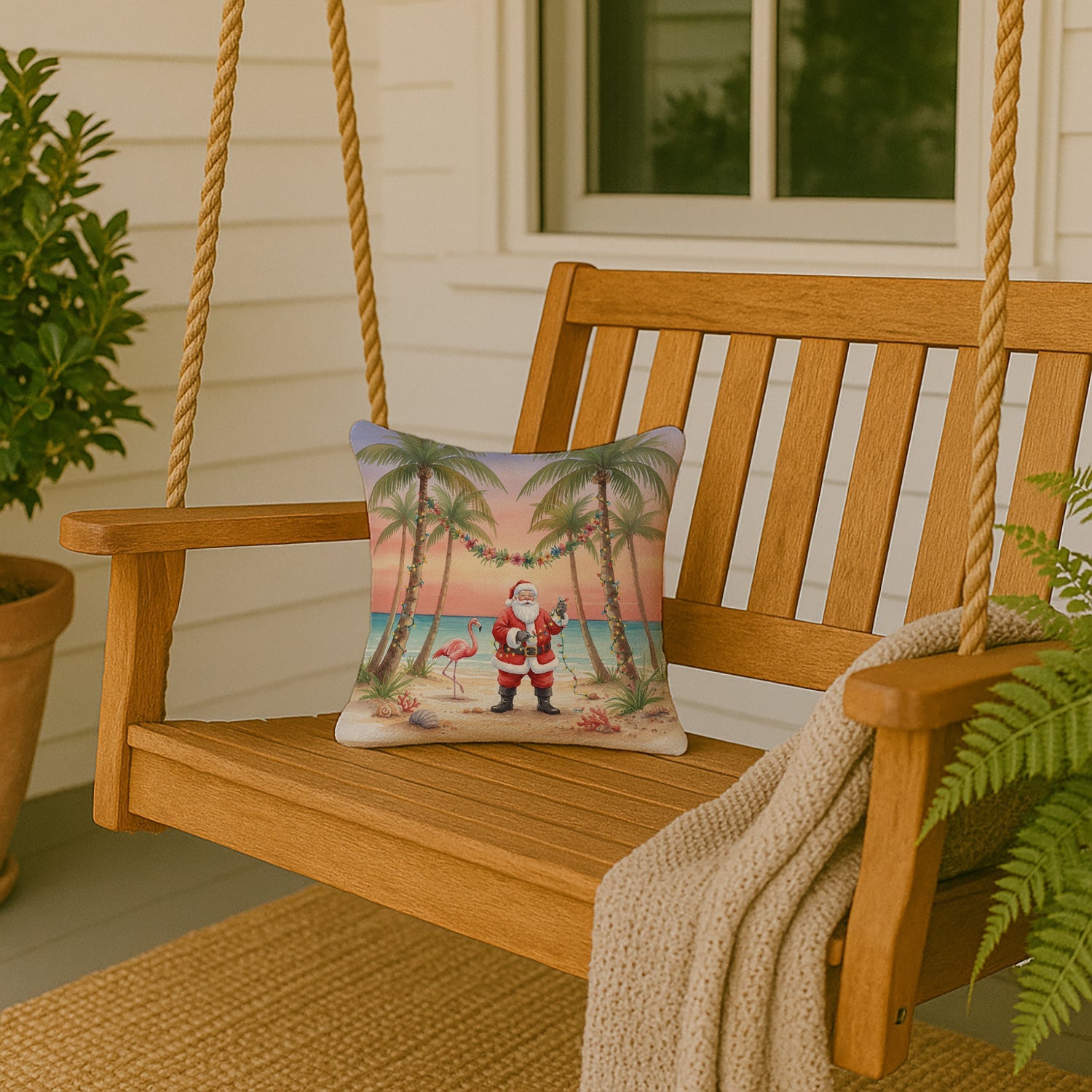 Celebrate Christmas with this Christmas Pillow. Add a touch of vibrancy and comfort to your outdoor seating with Caroline's Treasures Fabric Decorative Pillow. Measuring approximately 14 inches by 14 inches, this outdoor pillow is crafted to elevate the appeal of your patio furniture, infusing it with vivid color and artistic flair. The pillow includes a 100% Polyester Fabric sham filled with a quality pillow form to provide superior comfort. Innovatively made from our brand new material, specifically woven for its water resistance, this pillow is designed for durability. The soft canvas fabric offers versatility in use, fit for your indoor couch or your outdoor patio, porch, or veranda. The fabric is dyed with colorfast dyes built for resilience against weather conditions, ensuring the pillow retains its beauty over time. Constructed by sewing three fabric pieces to create a sham, the polyester insert is then nestled inside to form the pillow, resulting in an overstuffed pillow that maintains its shape. Both the sham and the pillow insert are proudly made in the United States. As the pillows are handcrafted, there may be minor variations in size, further enhancing their unique charm. Experience comfort in style with Caroline's Treasures Fabric Decorative Pillow.