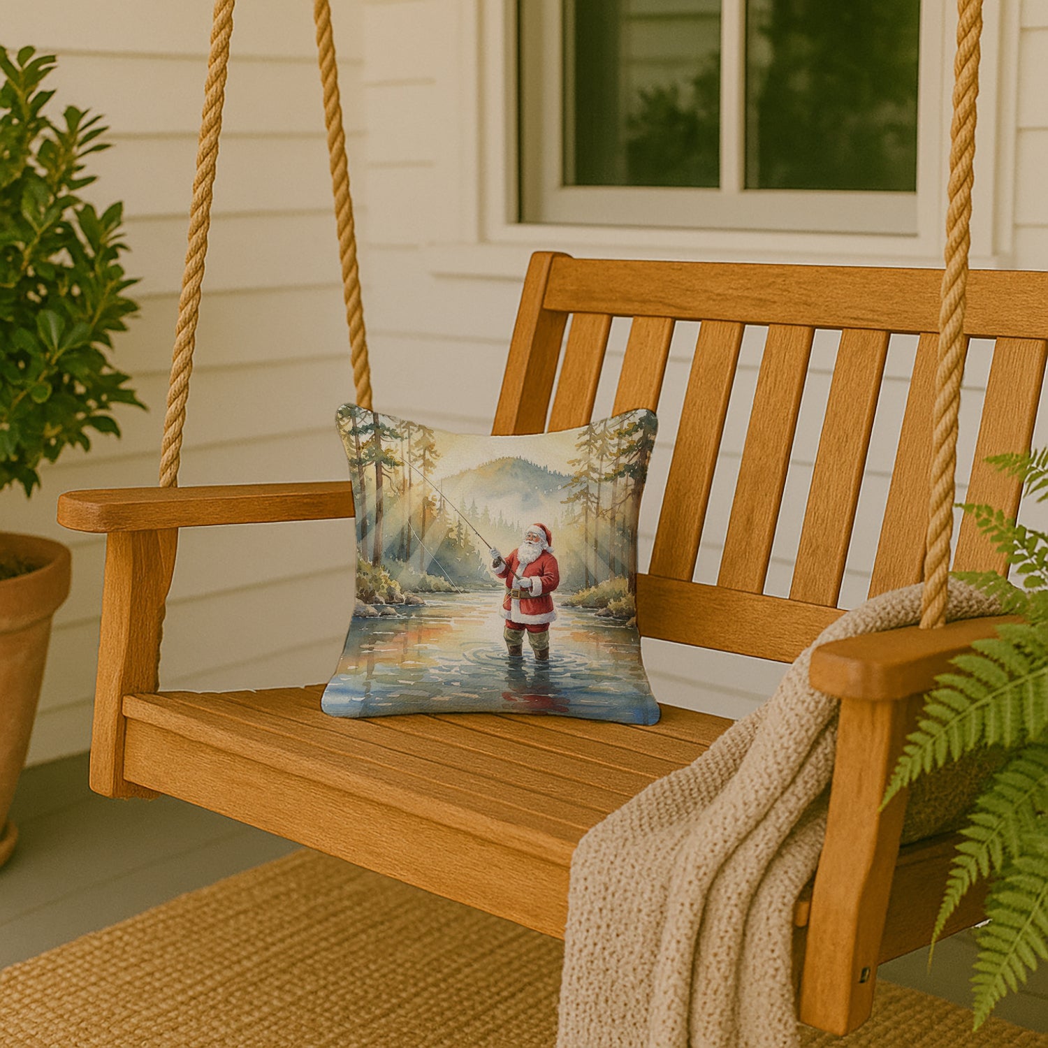Celebrate Christmas with this Christmas Pillow. Add a touch of vibrancy and comfort to your outdoor seating with Caroline's Treasures Fabric Decorative Pillow. Measuring approximately 14 inches by 14 inches, this outdoor pillow is crafted to elevate the appeal of your patio furniture, infusing it with vivid color and artistic flair. The pillow includes a 100% Polyester Fabric sham filled with a quality pillow form to provide superior comfort. Innovatively made from our brand new material, specifically woven for its water resistance, this pillow is designed for durability. The soft canvas fabric offers versatility in use, fit for your indoor couch or your outdoor patio, porch, or veranda. The fabric is dyed with colorfast dyes built for resilience against weather conditions, ensuring the pillow retains its beauty over time. Constructed by sewing three fabric pieces to create a sham, the polyester insert is then nestled inside to form the pillow, resulting in an overstuffed pillow that maintains its shape. Both the sham and the pillow insert are proudly made in the United States. As the pillows are handcrafted, there may be minor variations in size, further enhancing their unique charm. Experience comfort in style with Caroline's Treasures Fabric Decorative Pillow.