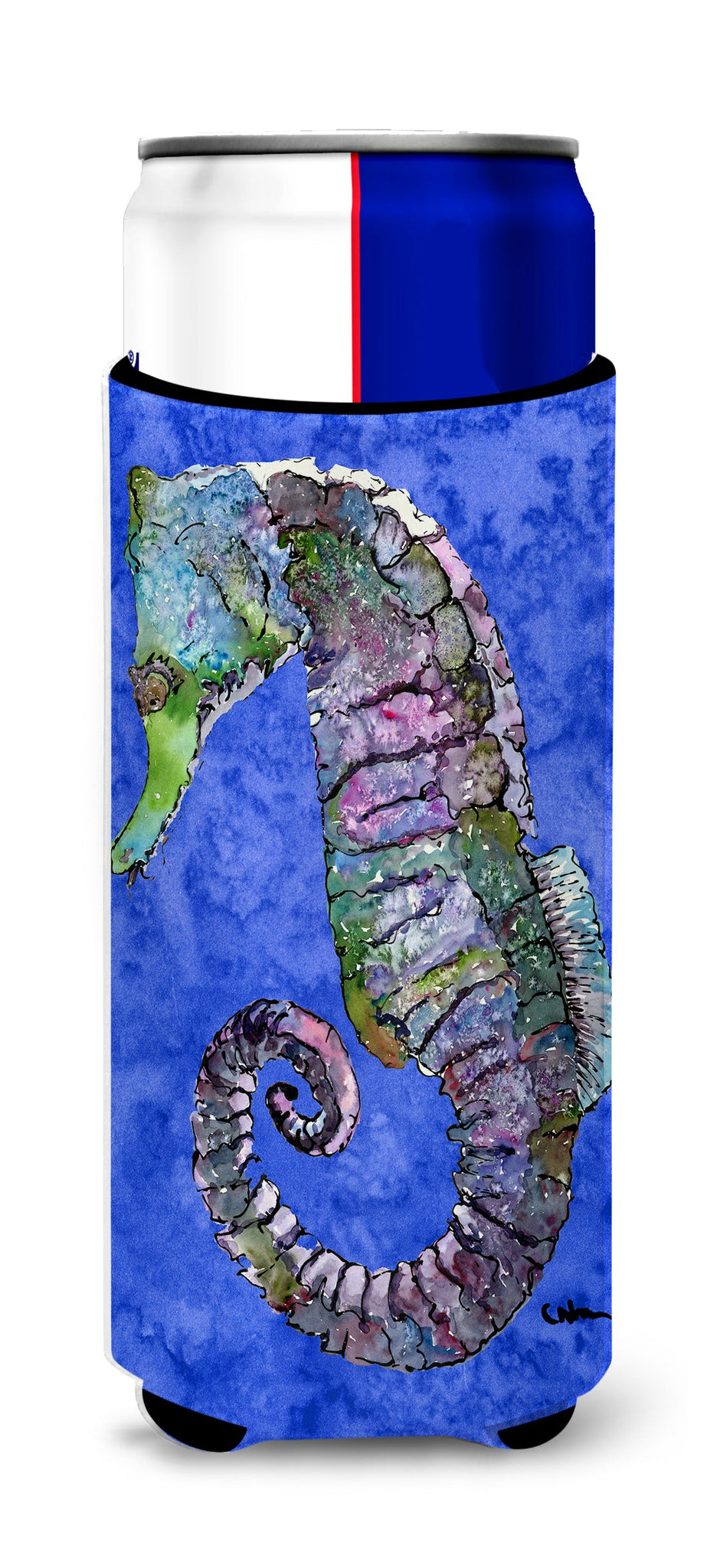 Decorate your space with our Seahorse artwork on a Slim Can Hugger. Elevate your beverage experience with our Slim Can Huggers, uniquely designed to fit a variety of your favorite 12 oz slim cans. Perfectly suited for Michelob Ultra, Starbucks Refreshers, Heineken Light, Bud Lite Lime, Dry Soda, Coors, Resin, Vitaminwater Energy, and Perrier Cans, our huggers ensure your drink stays refreshingly cool. The feature that sets our can huggers apart is the striking full-color artwork, exclusively created by one of our talented artists. It adds a touch of individuality and style to your drink, making it easier to identify in a crowd. A unique blend of practicality and flair, these huggers are an absolute must-have at any gathering. Our can huggers are not just beautiful but also incredibly durable. The design won't fade or peel off, and they can be safely cleaned in a washing machine. These collapsible beverage insulators are easy to store and transport, making them perfect for all occasions. Enjoy your drinks in style and comfort with our exceptional Slim Can Huggers.