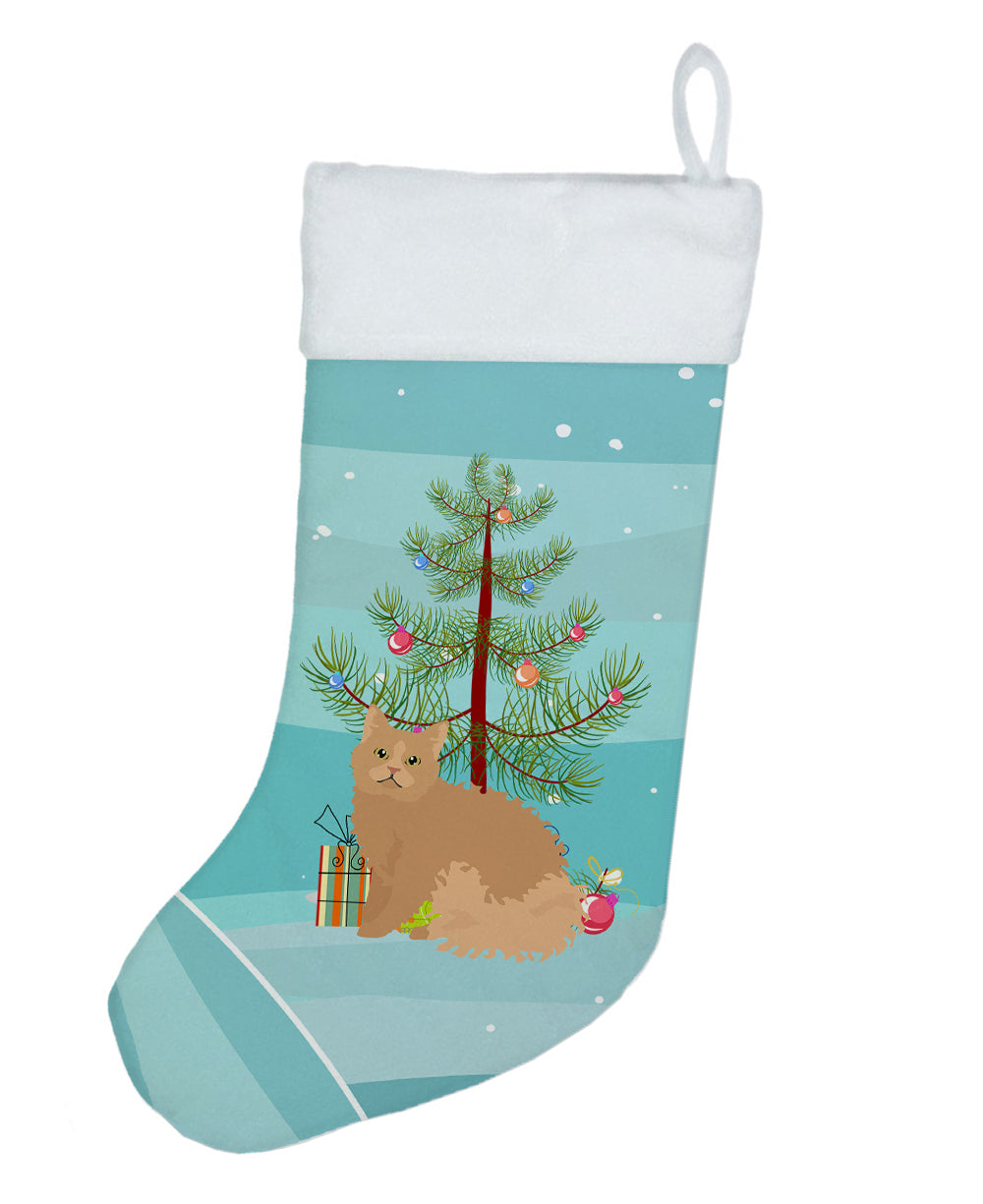 Decorate your space with our Christmas Selkirk Rex artwork on a Stocking. Bring the warmth of the festive season into your home with our luxurious Christmas Stocking. Designed to impress, this beautiful stocking is crafted from 100% polyester suede, delivering both superior softness and long-lasting durability. Measuring approximately 18 inches in height and 11 inches in width, it boasts generous space for a delightful assortment of Santa's gifts. What sets our Christmas Stocking apart is the exquisite design that is printed on both sides. Whether you hang it on the mantel or from a stocking hanger, the charming holiday print remains visible, adding a festive spirit to your décor from any direction. The stocking features a robust hanging tab that's crafted from the same suede fabric, guaranteeing secure hanging during the holiday excitement. An added bonus? This Christmas Stocking is completely machine washable. After the season's festivities, simply wash it, lay flat or hang to dry, and it's ready for the next holiday season. Proudly designed, printed and sewn in the United States, our stocking makes a stylish addition to your Christmas décor or a thoughtful gift for loved ones. Cherish the spirit of Christmas with our beautifully crafted, double-sided, easy-care stocking.