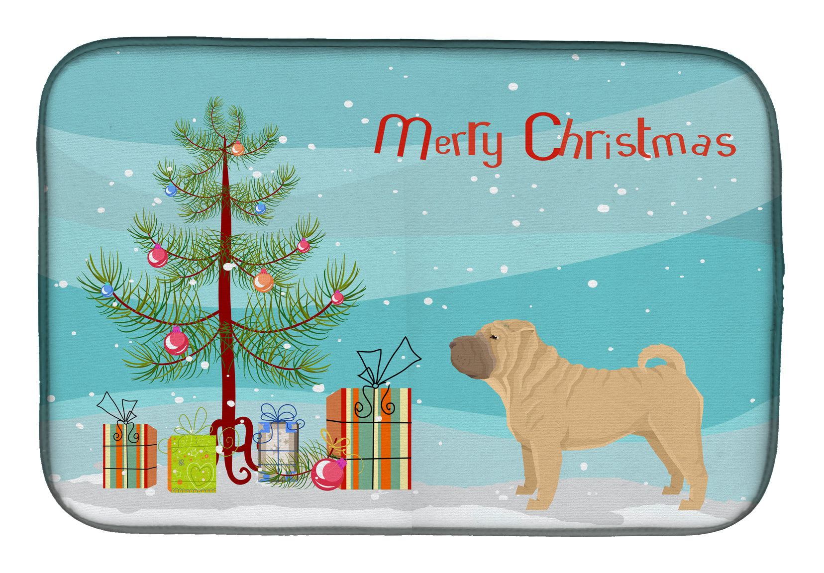 Decorate your space with our Christmas Shar Pei artwork on a Dish Drying Mat. Say goodbye to messy countertops and soggy dish towels with our innovative dish drying mat. Our high-quality dish drying pad is designed to keep your countertops dry while offering a stylish and efficient solution. Whether you're air drying dishes, glasses, stemware, silverware, pots, pans, bottles, or even fruits and vegetables, our dish mat is the perfect choice. The 14 inches x 22 inches size fits most counters and dish drying racks, and the non-slip design ensures stability. Made with water-absorbent polyester and a polyurethane foam insert, our dish drying mat is not only functional but also durable. It's machine washable and printed in the USA for long-lasting use. The beautiful artwork adds flair to your kitchen decor, making it a perfect housewarming gift or present for any occasion. Upgrade your kitchen experience with our absorbent and versatile dish drying mat.