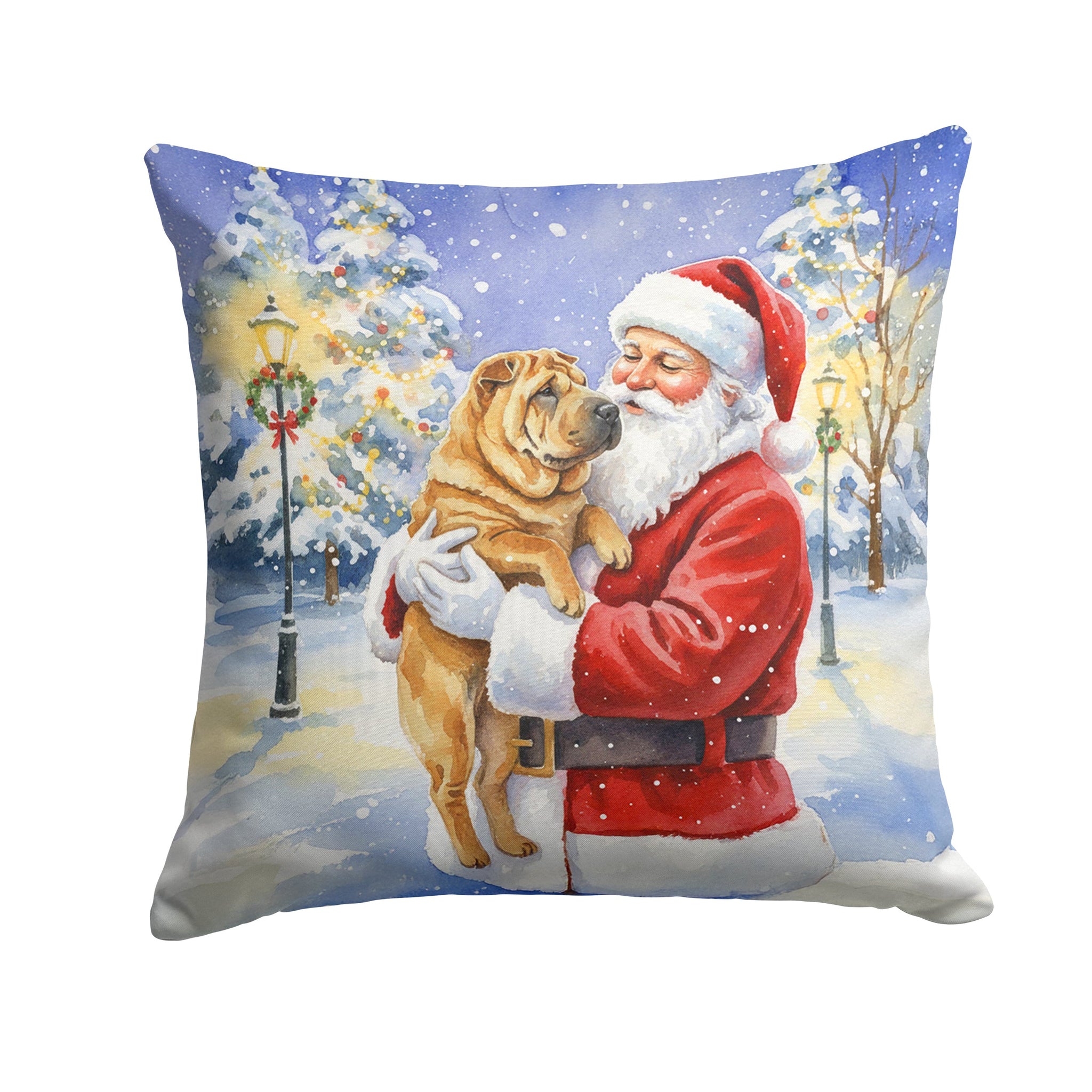 Throw Pillow featuring breed specific Shar Pei artwork. Celebrate Christmas with this Christmas Pillow. Revitalize your outdoor or indoor living space with Caroline's Treasures 18x18 Fabric Decorative Pillow. With a generously sized dimension of approximately 18 inches by 18 inches, this pillow makes a comfortable and aesthetic addition to any seating area. Made from a unique, water-resistant material developed by Caroline's Treasures, the pillow sham is 100% polyester fabric that's durable and ready to weather any condition. Its vibrant, full-color artwork will not fade over time as it is dyed with color-fast dyes. Whether you place it on your patio furniture, porch, veranda, or indoor couch, its soft canvas fabric ensures a cozy experience. The pillow is handcrafted in the United States, featuring a sham created from three pieces of fabric and a polyester insert for enduring shape and overstuffed comfort. Despite being robustly built to endure the outdoors, it is as soft and snug as your favorite indoor cushions. Please note, as all our pillows are handmade, sizes may vary slightly, adding to the charm of this unique decorative item.