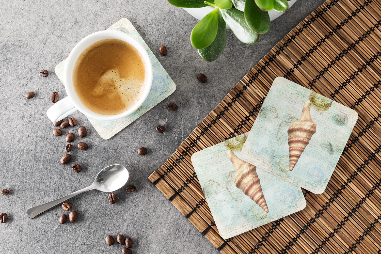Shells Coasters - Set of 4 Lightweight Foam, Absorbent Drink Coasters