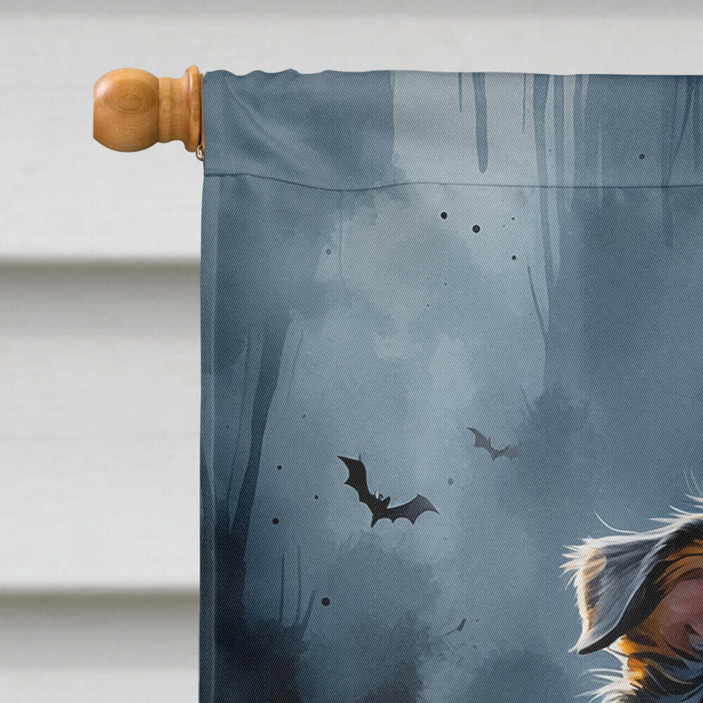 House Flag featuring breed specific Sheltie artwork. Celebrate Halloween with this Halloween Large Flag. Presenting our Heavy Duty Polyester House Size Decorative Sleeve Pole Flag, a vibrant addition to enhance the aesthetic appeal of your home. This large decorative flag, measuring approximately 28 x 40 inches, offers ample coverage and visibility. Each flag is meticulously sewn and made individually, ensuring a unique piece that may slightly vary in size. It's a sleeve pole flag, designed to fit a standard decorative flag pole effortlessly. Please note that the flag pole and bracket are not included and should be purchased separately. What sets our flag apart is its dual-sided print. The design is mirrored on both sides of the fabric, allowing for uniform visibility regardless of the angle. Printed in full color, our flag showcases vibrant hues that truly stand out. To ensure lasting vibrancy and durability, the dyes are heat-set into the fabric. This ensures your flag remains bright and captivating through various weather conditions. Elevate the look of your home with our Heavy Duty Polyester House Size Decorative Sleeve Pole Flag!