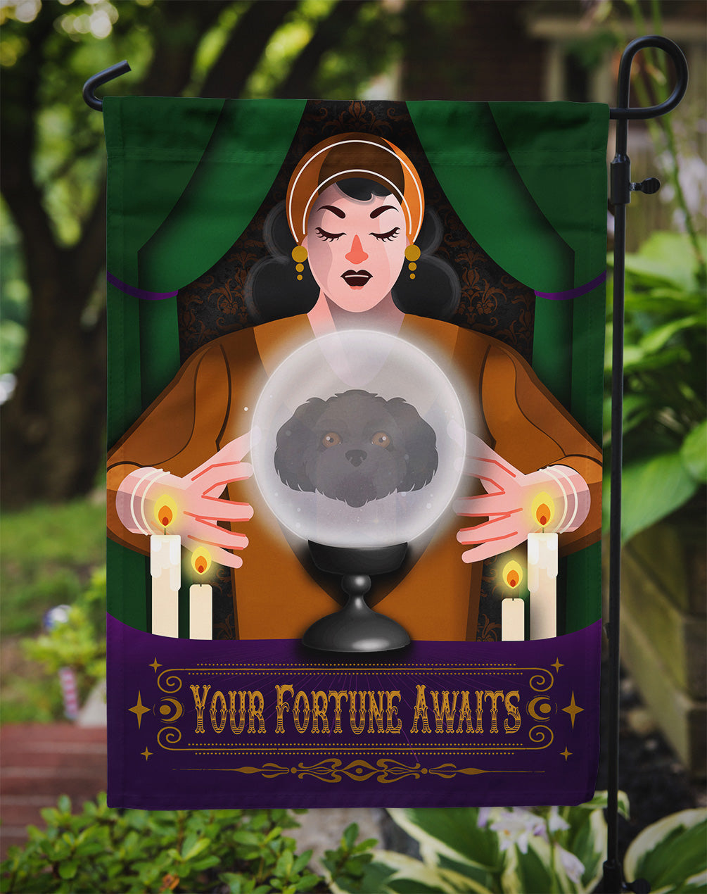Decorate your space with our Halloween Shih Tzu artwork on a Garden Flag. Enhance the beauty of your garden, patio, or yard with Caroline's Treasures Decorative Garden Flag, proudly made in the USA. Crafted from two pieces of thick, double-sided polyester fabric, this 2-ply garden flag is designed to withstand various weather conditions, making it water-resistant and weatherproof. Featuring correctly readable words on both sides, this garden flag offers a delightful visual experience from any angle. With its heavier weight, it stands out among other garden flags, ensuring stability and durability even in wind, rain, and snow. Measuring approximately 11 1/4 inches by 15 1/2 inches, this flag allows you to personalize your outdoor decor. It comes with a 1 1/2-inch sleeve sewn in, allowing easy attachment to any standard garden flag stand or garden size porch hanger (sold separately). Make a statement in your outdoor space with Caroline's Treasures Decorative Garden Flag, a vibrant and high-quality flag that adds color and personality to your surroundings. Proudly made in the USA, it's a symbol of quality craftsmanship and attention to detail.