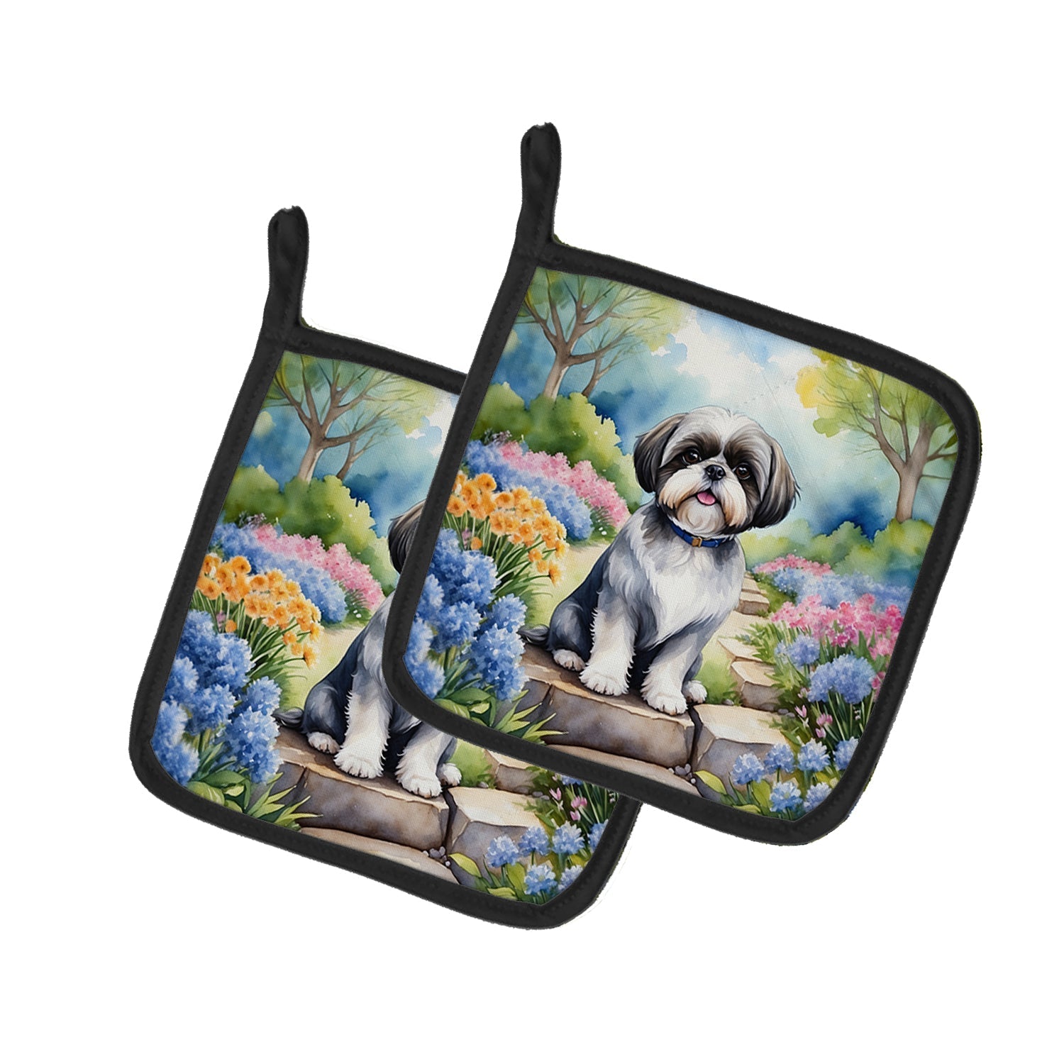 Shih Tzu Spring Path Pot Holders - Set of 2 Decorative Kitchen Helpers | Made in the USA