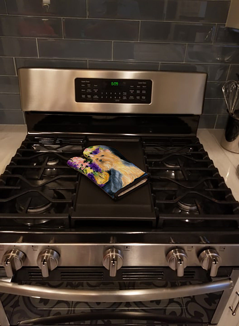 Decorate your space with our Silky Terrier artwork on a Oven Mitt. Presenting our Large Right Hand Thick Heat Resistant Oven Mitt, an indispensable tool for any culinary enthusiast. This mitt boasts layers of quilted protection on both sides, providing outstanding resistance against extreme heat. Embellished with beautifully printed artwork, it adds an extra dash of charm to your kitchen decor. At about 12 inches long and 8 1/2 inches wide, this oven mitt offers a generous fit, accommodating a diverse range of hand sizes. Its design is enhanced by a sleek Black bias tape trim, finished with a convenient hoop for easy hanging. Fresh out of the packaging, the quilting process may give the mitt a stiff feel, but rest assured, it will soften with use and washing. Our mitt is crafted with a unique center fabric, Insul-Bright, a composite material made from polyester fibers, needle-punched through a nonwoven substrate and a reflective metallized film. This smart material resists both conduction and radiant energy, reflecting heat back to its source, all while remaining breathable. Our oven mitt is machine washable and safe for tumble drying. It's a perfect gift for your favorite Chef, BBQ enthusiast, or just a little treat for yourself! Experience safety, style, and convenience rolled into one with this exceptional oven mitt.