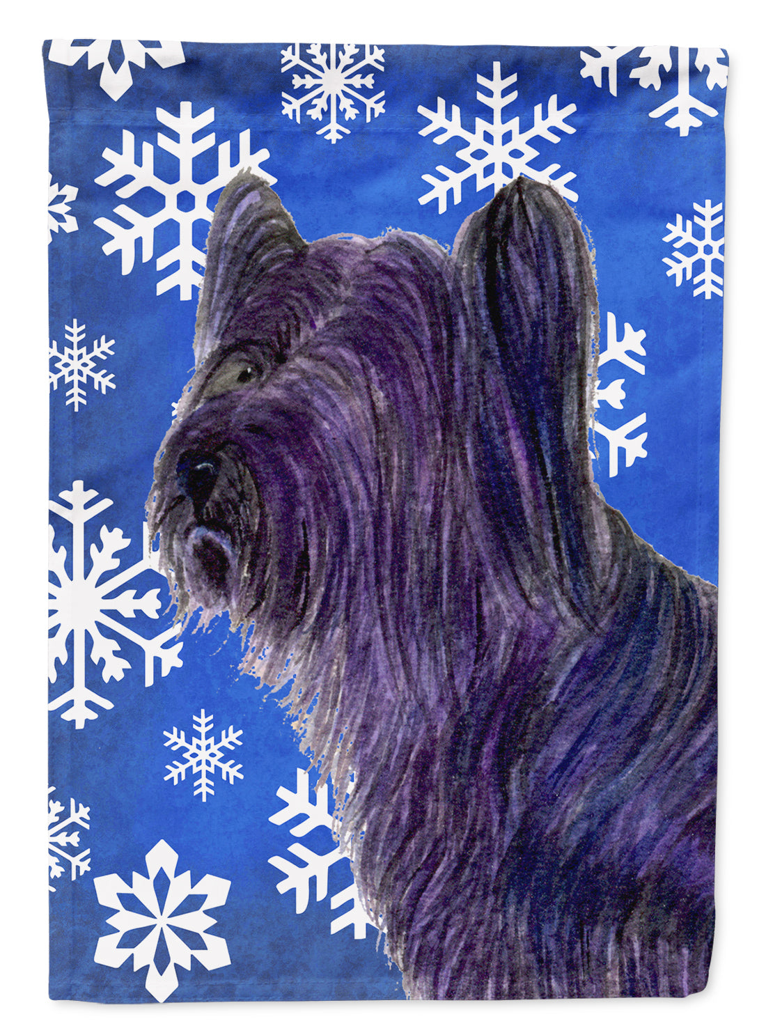 Decorate your space with our Christmas Skye Terrier artwork on a Large Flag. Bring a bit of Winter into your home with a Winter Large Flag. Presenting our Heavy Duty Polyester House Size Decorative Sleeve Pole Flag, a vibrant addition to enhance the aesthetic appeal of your home. This large decorative flag, measuring approximately 28 x 40 inches, offers ample coverage and visibility. Each flag is meticulously sewn and made individually, ensuring a unique piece that may slightly vary in size. It's a sleeve pole flag, designed to fit a standard decorative flag pole effortlessly. Please note that the flag pole and bracket are not included and should be purchased separately. What sets our flag apart is its dual-sided print. The design is mirrored on both sides of the fabric, allowing for uniform visibility regardless of the angle. Printed in full color, our flag showcases vibrant hues that truly stand out. To ensure lasting vibrancy and durability, the dyes are heat-set into the fabric. This ensures your flag remains bright and captivating through various weather conditions. Elevate the look of your home with our Heavy Duty Polyester House Size Decorative Sleeve Pole Flag!