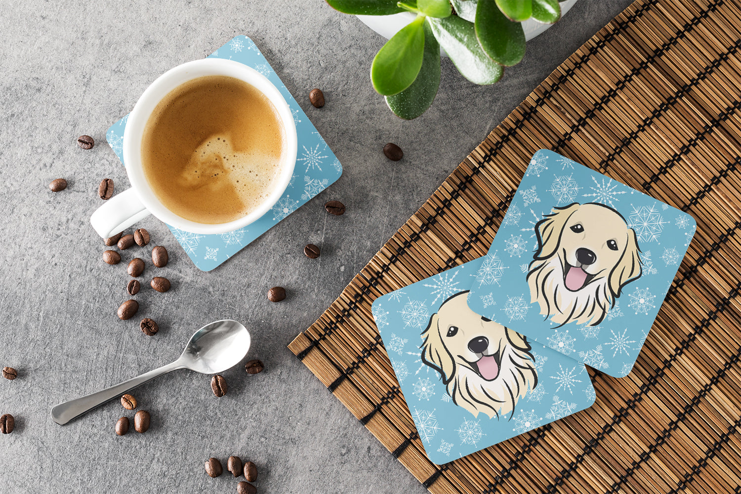 Decorate your space with our Christmas Golden Retriever artwork on a Coaster set. Presenting our Set of 4 Foam Coasters, a stylish and practical addition to your table setting. Each square coaster, measuring 3 1/2 inches by 3 1/2 inches, is perfectly sized to accommodate various drinkware, from coffee mugs to tumblers. These coasters stand out with their full-color artwork, permanently dyed onto the material for a vibrant and fade-resistant finish. They're not just functional, they're a fashionable statement, adding a touch of flair to any gathering or event. Our foam coasters serve a dual purpose - they protect your table from water stains and are perfect for both hot and cold drinks. The material used is similar to that of our high-quality mouse pads, ensuring durability and heat resistance. These coasters are easy to maintain - simply wash them in the top of your dishwasher and lay flat to dry. The design won't come off, ensuring they retain their vivid colors for years. Pair them with one of our insulated coolers or huggers for a cohesive, thoughtful gift set. Enhance your beverage experience with our Set of 4 Foam Coasters.