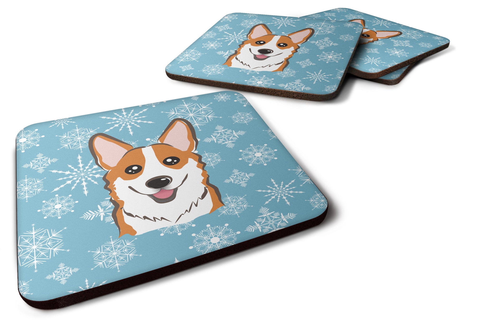 Snowflake Red Corgi Coasters - Set of 4 Lightweight Foam, Absorbent Drink Coasters BB1688FC