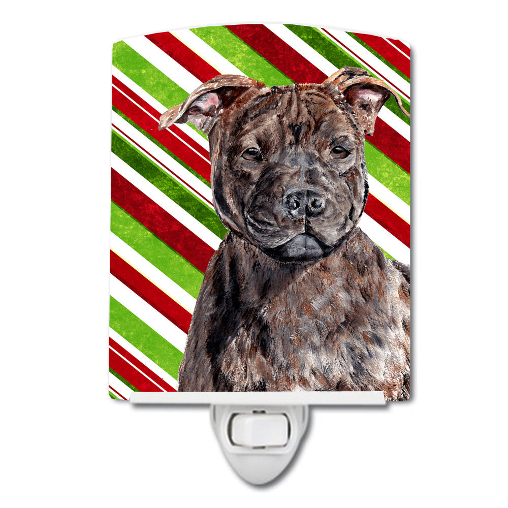 Decorate your space with our Christmas Staffordshire Bull Terrier artwork on a Night Light. Introduce a splash of artistic flair and subtle illumination to your space with the Decorative Ceramic Night Light from Caroline's Treasures. Perfect for any room, this night light seamlessly blends functionality with an aesthetic appeal, offering a stylish solution to brighten up dark corners of your home or office. Boasting a six-inch high by four-inch wide ceramic tile at the front, it showcases vivid, full-color artwork from distinguished artists, transforming a simple utility into a vibrant art piece. The artwork is securely encased in a robust metal holder, ensuring durability and longevity. Two screws are provided to firmly affix the tile into the holder. The holder extends three inches deep, housing an included bulb that emits a soft, welcoming glow. This product meets all safety standards, as evidenced by its UL approval. Proudly made in the United States from imported components, this Decorative Ceramic Night Light is not just a functional device; it's a statement piece that enhances the ambiance of your surroundings.