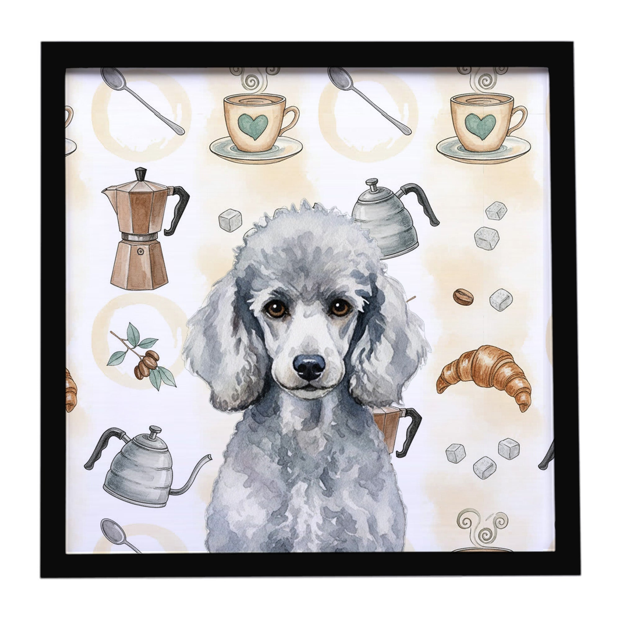 Standard Silver Poodle Coffee Bar Framed Metal Print