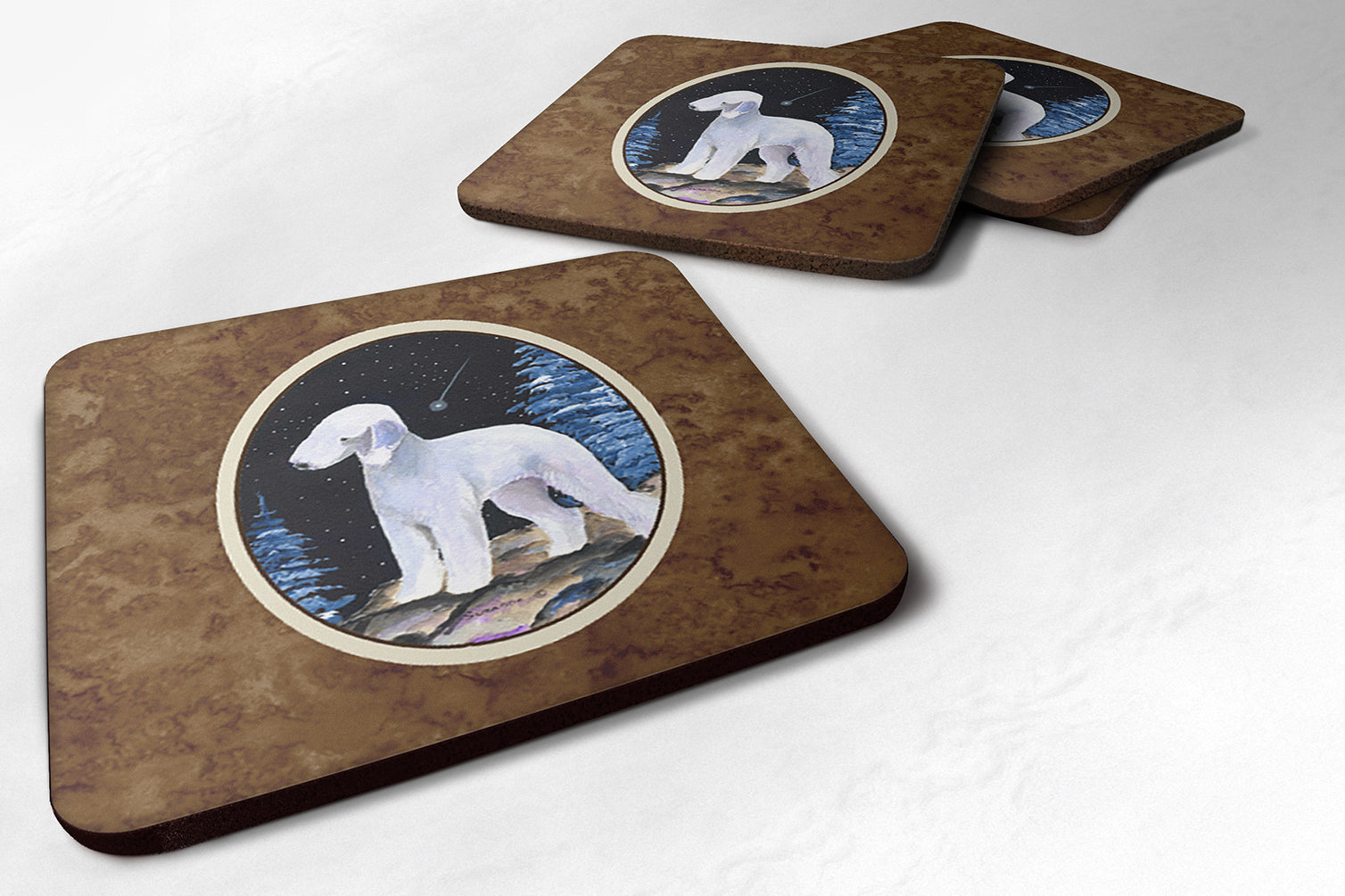 Starry Night Bedlington Terrier Coasters - Set of 4 Lightweight Foam, Absorbent Drink Coasters