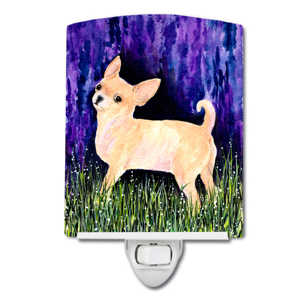 Decorate your space with our Chihuahua artwork on a Night Light. Introduce a splash of artistic flair and subtle illumination to your space with the Decorative Ceramic Night Light from Caroline's Treasures. Perfect for any room, this night light seamlessly blends functionality with an aesthetic appeal, offering a stylish solution to brighten up dark corners of your home or office. Boasting a six-inch high by four-inch wide ceramic tile at the front, it showcases vivid, full-color artwork from distinguished artists, transforming a simple utility into a vibrant art piece. The artwork is securely encased in a robust metal holder, ensuring durability and longevity. Two screws are provided to firmly affix the tile into the holder. The holder extends three inches deep, housing an included bulb that emits a soft, welcoming glow. This product meets all safety standards, as evidenced by its UL approval. Proudly made in the United States from imported components, this Decorative Ceramic Night Light is not just a functional device; it's a statement piece that enhances the ambiance of your surroundings.