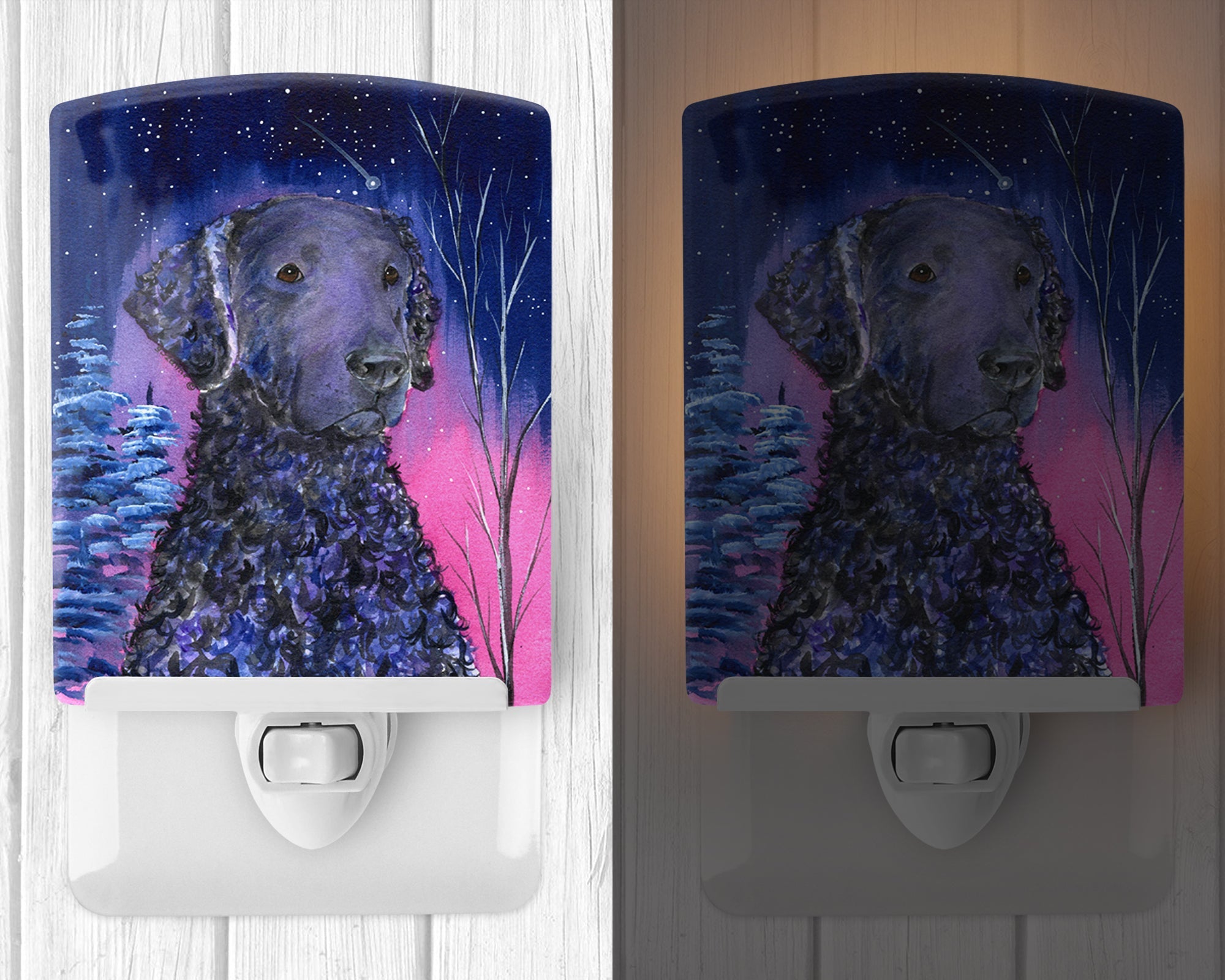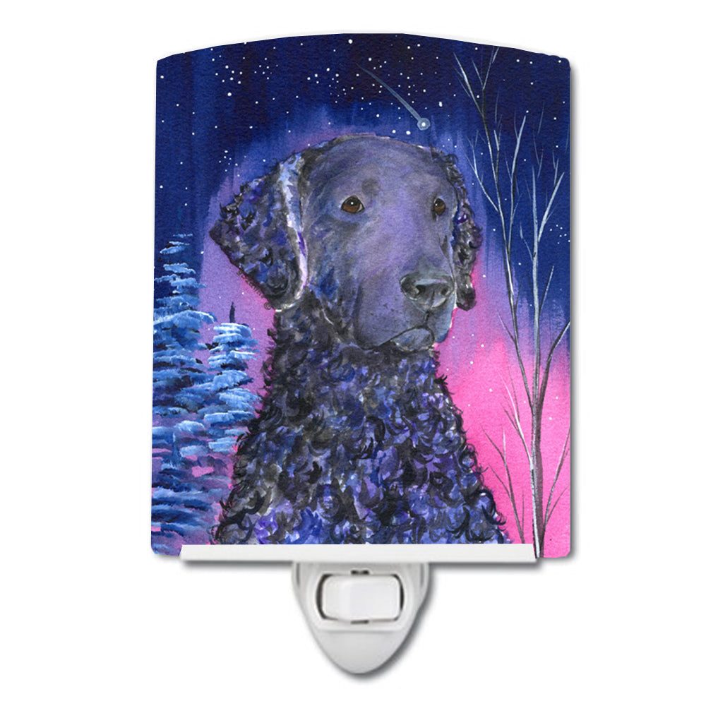 Decorate your space with our Curly-Coated Retriever artwork on a Night Light. Introduce a splash of artistic flair and subtle illumination to your space with the Decorative Ceramic Night Light from Caroline's Treasures. Perfect for any room, this night light seamlessly blends functionality with an aesthetic appeal, offering a stylish solution to brighten up dark corners of your home or office. Boasting a six-inch high by four-inch wide ceramic tile at the front, it showcases vivid, full-color artwork from distinguished artists, transforming a simple utility into a vibrant art piece. The artwork is securely encased in a robust metal holder, ensuring durability and longevity. Two screws are provided to firmly affix the tile into the holder. The holder extends three inches deep, housing an included bulb that emits a soft, welcoming glow. This product meets all safety standards, as evidenced by its UL approval. Proudly made in the United States from imported components, this Decorative Ceramic Night Light is not just a functional device; it's a statement piece that enhances the ambiance of your surroundings.