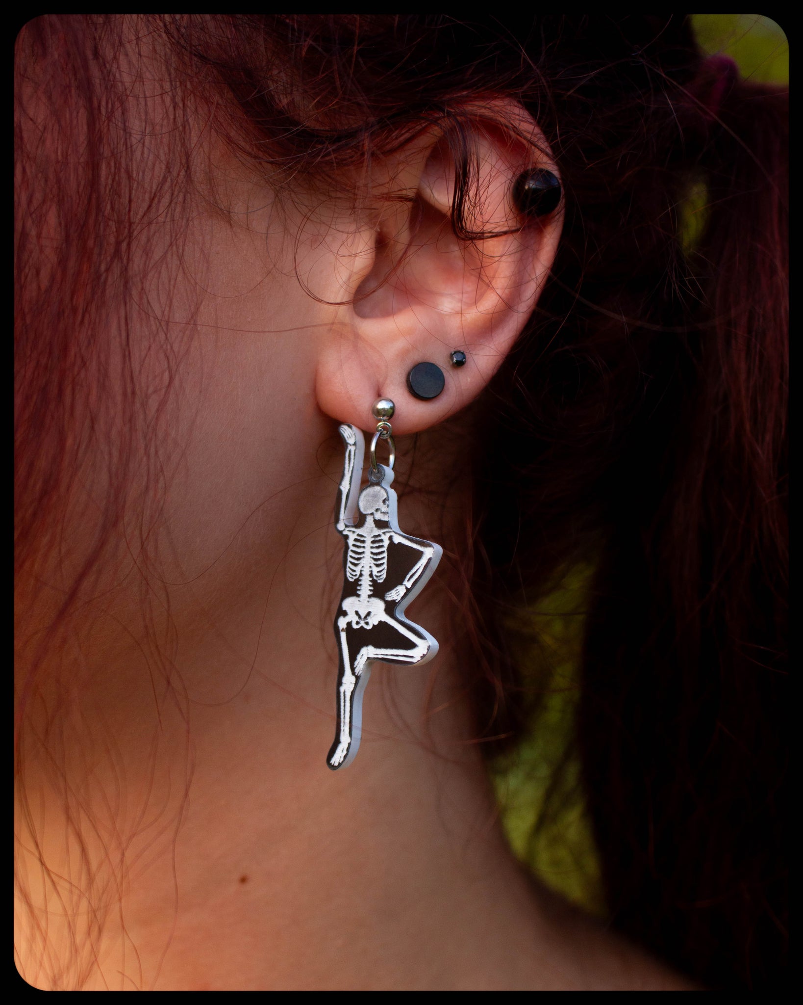 Add some bone-chilling balance to your style with the Stretching Skeleton Earrings. This playful mismatched pair showcases skeletons striking fun yoga poses, blending spooky with serenity for a quirky, eye-catching accessory that’s perfect for any playful soul.