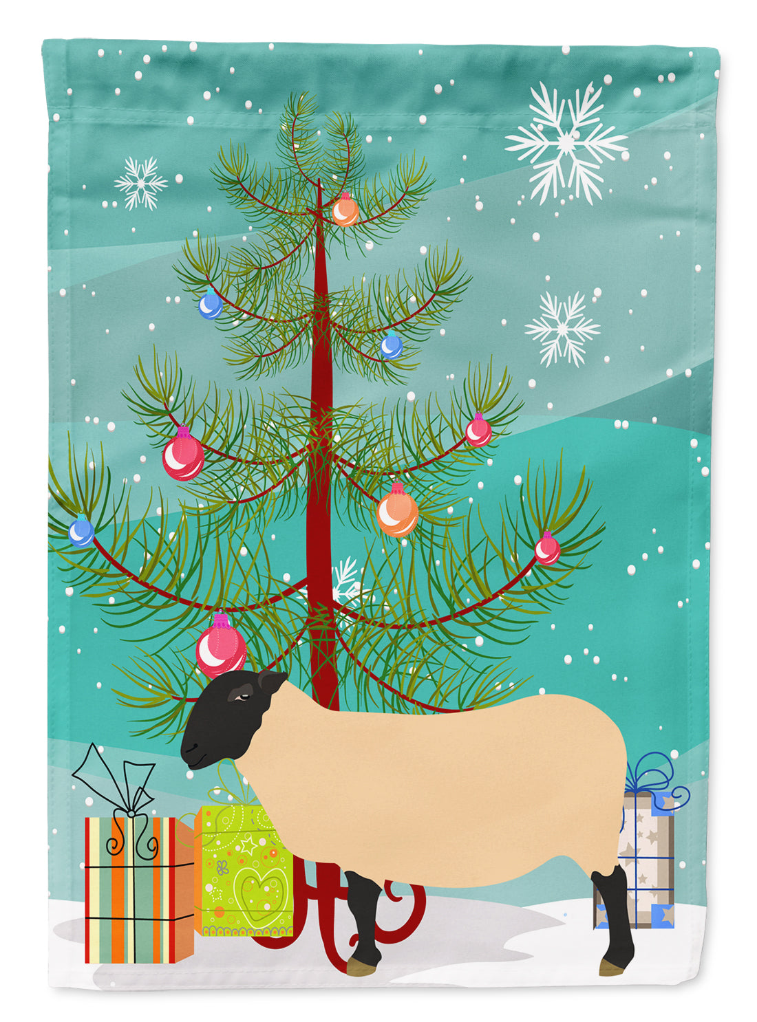 Decorate your space with our Christmas Suffolk Sheep artwork on a Garden Flag. Enhance the beauty of your garden, patio, or yard with Caroline's Treasures Decorative Garden Flag, proudly made in the USA. Crafted from two pieces of thick, double-sided polyester fabric, this 2-ply garden flag is designed to withstand various weather conditions, making it water-resistant and weatherproof. Featuring correctly readable words on both sides, this garden flag offers a delightful visual experience from any angle. With its heavier weight, it stands out among other garden flags, ensuring stability and durability even in wind, rain, and snow. Measuring approximately 11 1/4 inches by 15 1/2 inches, this flag allows you to personalize your outdoor decor. It comes with a 1 1/2-inch sleeve sewn in, allowing easy attachment to any standard garden flag stand or garden size porch hanger (sold separately). Make a statement in your outdoor space with Caroline's Treasures Decorative Garden Flag, a vibrant and high-quality flag that adds color and personality to your surroundings. Proudly made in the USA, it's a symbol of quality craftsmanship and attention to detail.
