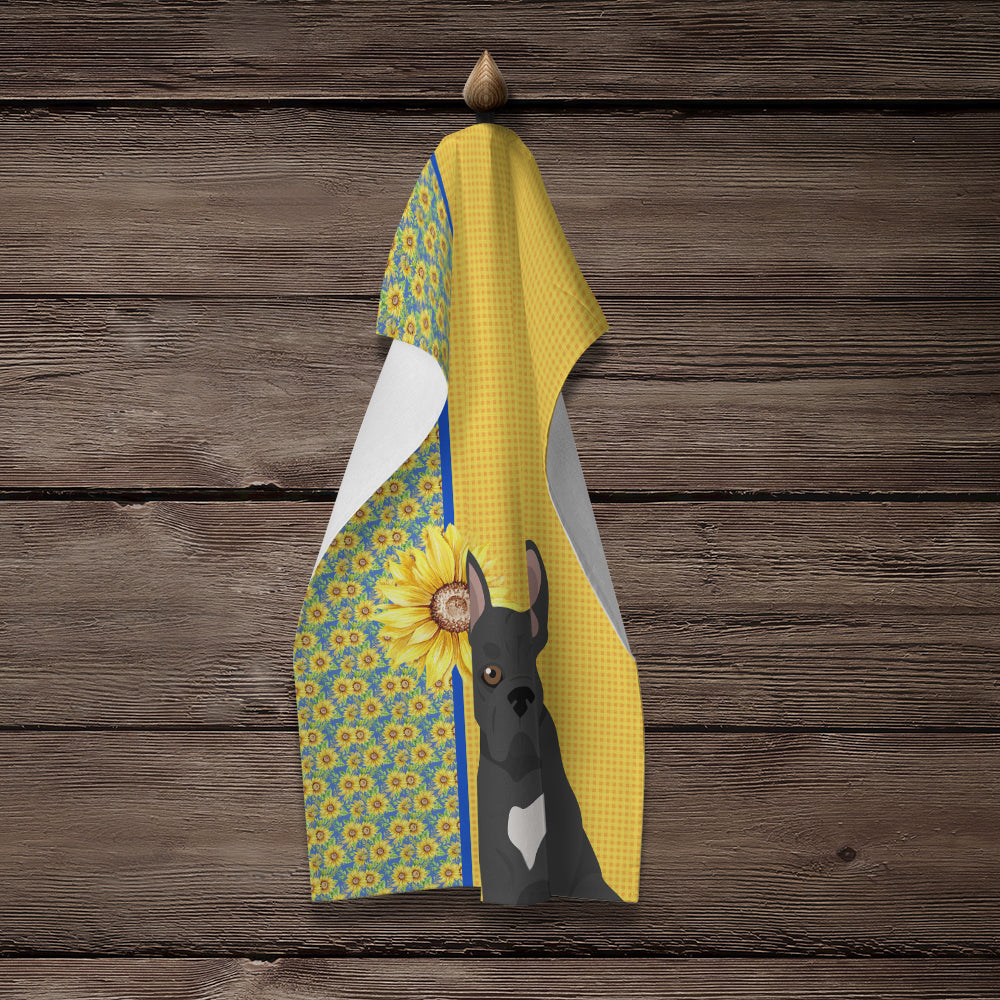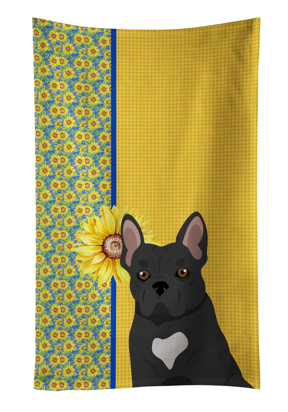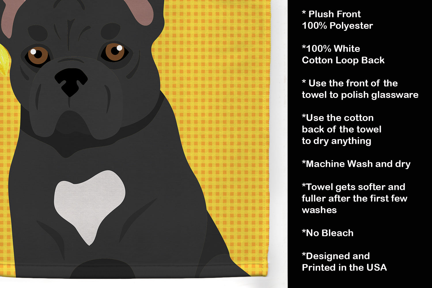 Decorate your space with our French Bulldog artwork on a Kitchen Towel. Bring a bit of Summer into your home with a Summer Kitchen Towel. Experience the perfect blend of aesthetic appeal and functional excellence with our Plush Velour Kitchen Towels. These are not your ordinary decorative kitchen towels that gather dust. Instead, they are designed to be as practical as they are stylish. The front layer of our towel is constructed from a minky plush polyester, known for its durability and color retention. Unlike conventional kitchen towels, the artwork on our towels is dyed directly into the fabric, ensuring vibrant colors that last. Polish your glassware to a brilliant sparkle using the plush front side of the towel. Flip to the back, crafted from 100% cotton terry loop, to exploit its exceptional absorbency for drying dishes or wiping down counters. Our kitchen towels redefine the concept of functional art, offering lasting quality that maintains the towel's shape over time. Measuring 15 inches by 25 inches and weighing 2.3 lbs per dozen, these towels deliver an overwhelming sensory experience with their soft, plush, and smooth texture. The edges are meticulously finished with binding, enhancing their durability and visual appeal. For your convenience, these towels are machine washable and can be dried on low heat. After the first wash, the top fabric becomes even softer and fluffier, eliminating the need for ironing. Treat your kitchen to the luxury and functionality it deserves with our plush velour kitchen towels.