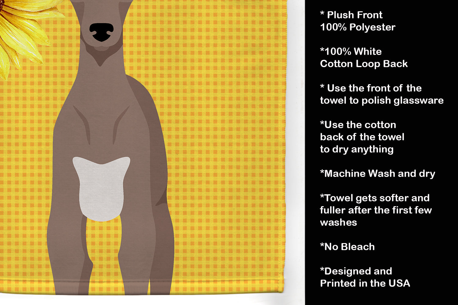 Decorate your space with our Italian Greyhound artwork on a Kitchen Towel. Bring a bit of Summer into your home with a Summer Kitchen Towel. Experience the perfect blend of aesthetic appeal and functional excellence with our Plush Velour Kitchen Towels. These are not your ordinary decorative kitchen towels that gather dust. Instead, they are designed to be as practical as they are stylish. The front layer of our towel is constructed from a minky plush polyester, known for its durability and color retention. Unlike conventional kitchen towels, the artwork on our towels is dyed directly into the fabric, ensuring vibrant colors that last. Polish your glassware to a brilliant sparkle using the plush front side of the towel. Flip to the back, crafted from 100% cotton terry loop, to exploit its exceptional absorbency for drying dishes or wiping down counters. Our kitchen towels redefine the concept of functional art, offering lasting quality that maintains the towel's shape over time. Measuring 15 inches by 25 inches and weighing 2.3 lbs per dozen, these towels deliver an overwhelming sensory experience with their soft, plush, and smooth texture. The edges are meticulously finished with binding, enhancing their durability and visual appeal. For your convenience, these towels are machine washable and can be dried on low heat. After the first wash, the top fabric becomes even softer and fluffier, eliminating the need for ironing. Treat your kitchen to the luxury and functionality it deserves with our plush velour kitchen towels.